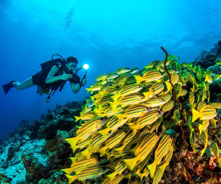 มัลดีฟส์มีจุดดำน้ำที่ดีที่สุดในโลกอยู่หลายแห่งด้วยกัน ซึ่งขึ้นชื่อว่าเต็มไปด้วยสัตว์ทะเลในท้องถิ่นที่ไม่ซ้ำใครอยู่มากมาย พาตัวคุณดื่มด่ำไปในโลกแห่งความงามที่แสนสงบและสง่างามใน Baa Atoll ไม่ว่าคุณจะเป็นนักดำน้ำมืออาชีพหรือต้องการสัมผัสประสบการณ์ดำน้ำลึก ก็ห้ามพลาดโอกาสในการสำรวจความมหัศจรรย์ของโลกใต้ท้องทะเล