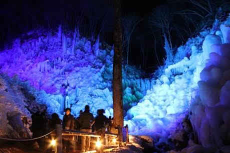 แท่งน้ำแข็งย้อยแห่งอาชิงะคุโบะ สร้างขึ้นโดยชาวท้องถิ่นใช้น้ำจากภูเขาไหลมาตามทางลาด กว้าง 200 เมตร สูง 3 เมตร เป็นศิลปะจากน้ำแข็งที่ใหญ่โตมโหฬารมาก อยู่ใกล้สถานีรถไฟสายเซบุจิจิบุ เป็นสถานที่ที่พิเศษ สะดวกในการเดินทาง ทิวทัศน์ภูเขาทั้งลูกถูกแช่แข็งเป็นภาพที่สวยงามมาก ต้อนรับผู้มาเยือนด้วยวิวที่สวยงามของภูเขาขนาดใหญ่ซึ่งเพียงพอที่จะทำให้ผู้มาเยี่ยมชมลืมความหนาวเย็นไปได้เลย