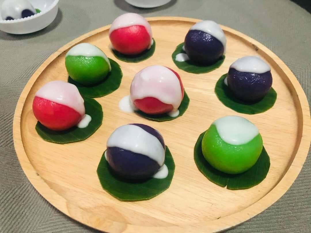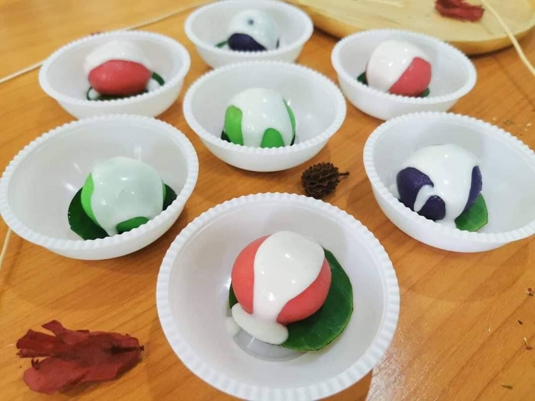 ซึ่งร้านนี้ปั้นแป้งได้เหนียมนุ่มกำลังดี และแต่งสีสันด้วยวิธีธรรมชาติ ไม่ใช้สีผสมอาหาร