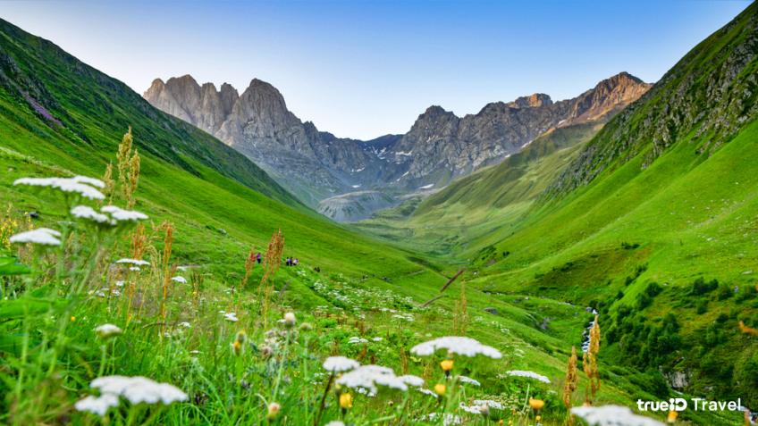 หมู่บ้านเล็ก ๆ กลางหุบเขาในเทือกเขาคอเคซัส ที่ใครๆ หลายคนยกให้มีความงามเทียบเท่าสวิสเลยทีเดียว ด้วยความที่มีวิวทุ่งหญ้าเขียวขจีสุดลูกหูลูกตา ฉากหลังเป็นยอดเขาสูงใหญ่อลังการมีหิมะปกคลุมตลอดทั้งปี จึงทำให้ที่นี่เป็นจุดเดินเขายอดนิยมของนักผจญภัย