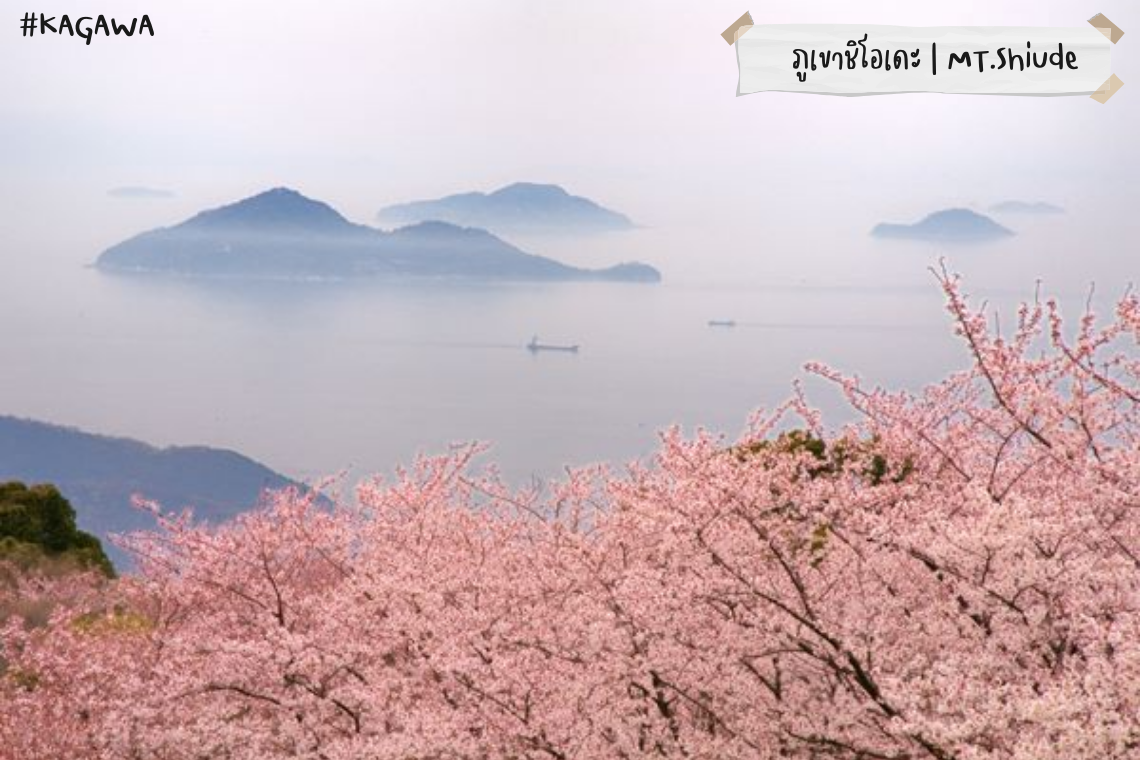 ภาพความสวยงามที่น่าจดจำของภูเขาที่ถูกย้อมไปด้วยสีชมพูอ่อนของซากุระราว 1,000 ต้น บนภูเขาชิอุเดะ ที่มีความสูง 352 เมตร บนคาบสมุทรโชไน (Shonai Peninsula) เป็นภาพที่สุดแสนโรแมนติก เมื่อได้ดื่มด่ำไปกับซากุระบานสะพรั่ง มีเมฆหมอกกับวิวทะเลเซโตะ (Seto Inland Sea) อยู่เบื้องหลัง ซึ่งในวันที่อากาศเป็นใจก็จะเห็นไปถึงเกาะโชโดะชิมะ (Shodoshima Island) จากจุดชมวิวด้านบน ยิ่งในช่วงที่ประอาทิตย์ค่อยๆ ลับขอบฟ้า แสดงแดดที่ย้อมผืนน้ำทะเลให้เป็นสีส้มอมชมพูนั้นสะกดสายตาเป็นอย่างยิ่ง