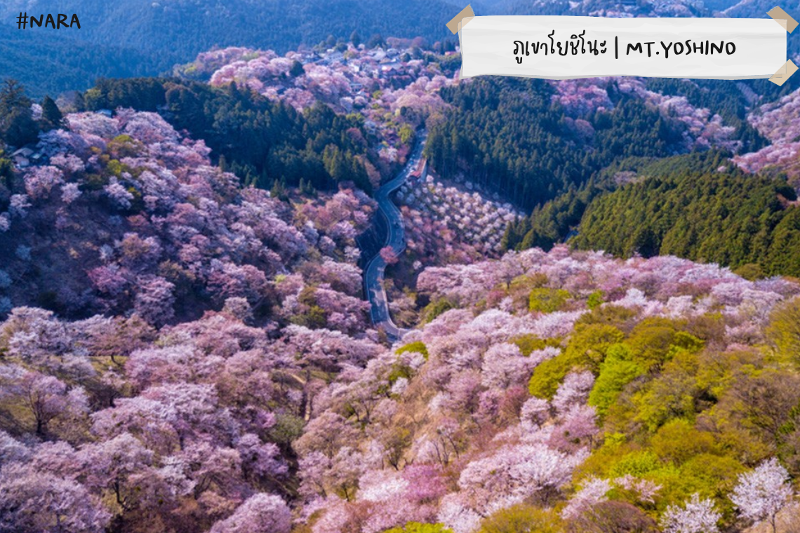 หุบเข่สีชมพูที่ภูเขาโยชิโนะ ที่มีซากุระเก่าแก่อยู่ 200 สายพันธ์กว่า 30,000 ต้น เป็นภูเขาที่ทอดตัวแผ่กว้างไปทั่วเมืองโยชิโนะจังหวัดนาระ และเป็นจุดล้ำค่าที่ภูเขาทั้งลูกได้รับการขึ้นทะเบียนเป็นมรดกโลก นอกจากนี้ยังขึ้นชื่อว่าเป็นจุดชมซากุระชื่อดังอันดับหนึ่งในญี่ปุ่น ยังมีอาคารสิ่งปลูกสร้างประวัติศาสตร์หลายแห่งเช่นวัดและศาลเจ้าตามเชิงเขาและบนสันเขา ให้คุณสามารถเดินตระเวนไปชมจุดต่างๆได้ค่ะ