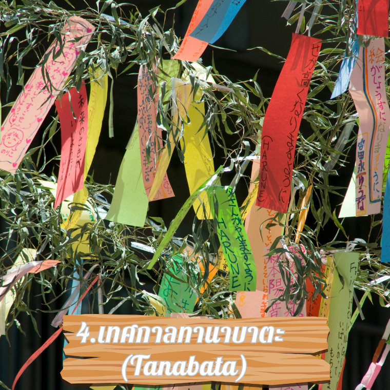 เทศกาลทานาบาตะ ตรงกับวันที่ 7 กรกฎาคมของทุกปี. เทศกาลทานาบาตะ มีตำนานมาว่าความรักของเจ้าหญิงทอผ้าโอริฮิเมะ และชายเลี้ยงวัวฮิโกโบชิ ทั้งสองตกหลุมรักกันและเริ่มละเลยหน้าที่ของทั้งคู่เอง เมื่อพ่อของโอริฮิเมะรู้เข้าก็โกรธมาก จึงแยกทั้งคู่ออกจากกันโดยมีทางช้างเผือกคั่นกลางเจ้าหญิงโอริฮิเมะโศกเศร้าเสียใจมาก พ่อจึงอนุญาตให้ทั้งสองมาพบกันได้ปีละ 1 ครั้งในวันที่ 7 เดือน 7 ในวันนั้น นกคาซาซากิจะมาเป็นสะพานให้ทั้งสองได้ข้ามทางช้างเผือกมาพบกัน ชาวญี่ปุ่นมีธรรมเนียมเขียนกระดาษขอพรที่เรียกกันว่า ทันซาคุ (Tanzaku) แล้วนำไปแขวนกับกิ่งไผ่ ทันซาคุมี 5 สี แต่ะละสีมีความหมาย อย่างเช่น สีน้ำเงิน การเติบโต ความก้าวหน้า สีแดง คำขอบคุณและความปรารถนาดีต่อพ่อแม่และผู้ใหญ่ สีเหลือง ความสัมพันธ์ สีขาว ความตั้งใจที่จะทำให้สำเร็จ สีม่วง การเรียน ชาวญี่ปุ่นเชื่อว่าเมื่อเขียนคำอธิษฐานและแขวนกับต้นไผ่จะทำให้คำอธิษฐานเป็นจริง