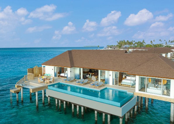 9.Avani Overwater Pool Villa Two Bedroom ขนาดห้อง 287 ตารางเมตร / 3,088 ตารางฟุต จำนวนสูงสุด ผู้ใหญ่ 5 คน เป็นแนววิลลา ก็จะมีความเป็นส่วนตัวขึ้นมาหน่อย มีสระว่ายน้ำส่วนตัวอยู่ในวิลลา