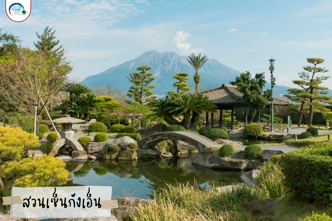 สวนเซ็นกังเอ็นเป็นสวนขนาดใหญ่ มีจุดเด่นคือการมีภูเขาไฟซากุระจิมะและอ่าวคาโกชิม่าเป็นพื้นหลังทำให้ทิวทัศน์มีความสวยงามมาก ในอดีตนั้นสวนนี้เป็นที่ตั้งคฤหาสน์ของตระกูลชิมัตสึ ปัจจุบันเปิดเป็นสถานที่ท่องเที่ยวให้ผู้คนเข้ามาชมความสวยงามของสวนสไตล์ญี่ปุ่น มีการรวมเอาสระน้ำเล็ก ๆ ธารน้ำ ศาลเจ้า และทางเดินใต้เงาของต้นไผ่และต้นไม้ใหญ่เอาไว้ด้วยกัน นอกจากนี้ยังมีเส้นทางศึกษาธรรมชาติระยะทางสั้น ๆ ที่เดินไปยังจุดชมวิวบนเนินเขาโดยใช้เวลาเพียง 20 นาทีเท่านั้น