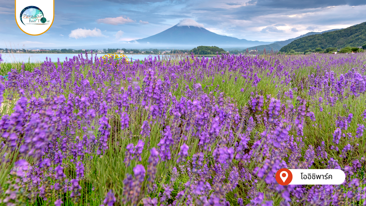 สวนสาธารณะที่มาเที่ยวได้เกือบทั้งปีกับทางเดิน 350 เมตร ไม่ว่าจะเป็นฤดูใบไม้ผลิ ปกคลุมด้วยดอกชิบะซากุระที่บานสะพรั่งตั้งแต่ช่วงปลายเดือนเมษายน-ปลายเดือนพฤษภาคม ฤดูร้อนที่มีทั้งดอกลิลลี่ ดอกไฮเดรนเยีย และในช่วงปลายเดือนมิถุนายน-ปลายเดือนกรกฎาคม พื้นที่นี้ก็จะปกคลุมไปด้วยสีม่วงของดอกลาเวนเดอร์ที่สวยงาม หรือหากจะมาเที่ยวในช่วงฤดูใบไม้ร่วงก็ขอแนะนำให้มาช่วงกลางเดือนตุลาคมถึงสิ้นเดือนตุลาคมค่ะ เพราะเป็นช่วงของต้นโคเคียที่กำลังเปลี่ยนเป็นสีแดง และเมื่อมีพื้นหลังเป็นทะเลสาบคาวากุจิโกะและภูเขาไฟฟูจิ บอกได้เลยค่ะว่าเป็นภาพที่สวยราวกับหยุดเวลาไว้เลยค่ะ