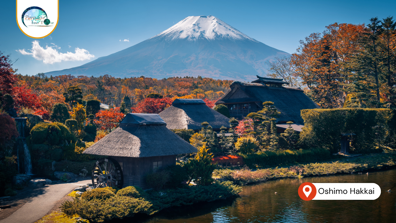 หมู่บ้านเล็ก ๆ นี้ตั้งอยู่ระหว่างทะเลสาบคาวากุจิโกะและทะเลสาบยามานากะโกะ ทำให้เป็นจุดแวะพักหนึ่งที่นักท่องเที่ยวมักแวะมาเยี่ยมเยือนหลังจากเที่ยวที่ทะเลสาบคาวากุจิโกะแล้ว ที่นี่มีบ่อน้ำทั้งหมด 8 บ่อโดยน้ำในบ่อเหล่านี้มาจากหิมะที่ละลายจากยอดภูเขาไฟฟูจิ ไหลผ่านชั้นหินภูเขาไฟที่มีรูพรุนและพาเอาแร่ธาตุต่าง ๆ มาด้วย ทำให้น้ำที่นี่ใสสะอาดจนเห็นตัวปลาที่แหวกว่ายอยู่ในน้ำ นอกจากบ่อน้ำที่ใสสะอาดแล้ว ในวันที่อากาศดีก็จะสามารถมองเห็นภูเขาไฟฟูจิได้อย่างชัดเจนเลยค่ะ การมาเที่ยวที่หมู่บ้านนี้ในแต่ละฤดูก็จะได้บรรยากาศที่แตกต่างกันออกไป ฤดูใบไม้ผลิก็จะมีดอกซากุระบานอยู่โดยรอบ ฤดูร้อนมีอากาศดี เพราะอยู่ใกล้แหล่งน้ำและภูเขา สามารถเดินชมหมู่บ้านและสูดอากาศสดชื่นได้อย่างเต็มปอด ฤดูใบไม้ร่วงก็มีใบไม้เปลี่ยนสี ทำให้เป็นหนึ่งในจุดชมใบไม้เปลี่ยนสีที่สวยงามไม้แพ้ที่ใดเลยค่ะ ส่วนฤดูหนาว หมู่บ้านแห่งนี้ก็ถูกปกคลุมไปด้วยหิมะ เมื่อเห็นหิมะที่อยู่บนหลังคาฟางและตัวบ้านที่ไม่ใหญ่มาก ทำให้รู้สึกราวกับหลุดเข้ามาอยู่ในเทพนิยายเลยล่ะค่ะ