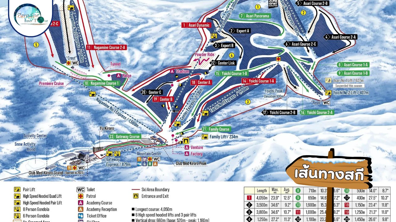 1) Club Med Kiroro Grand - สกีรีสอร์ทที่เหมาะกับทุกเพศทุกวัย มีสิ่งอำนวยความสะดวกสำหรับเด็ก 2 ปีขึ้นไป มีกิจกรรมที่น่าสนใจ เช่น การเยี่ยมชมโรงงานวิสกี้ ล่องเรือคลองโอตารุที่มีประวัติศาสตร์อันยาวนาน