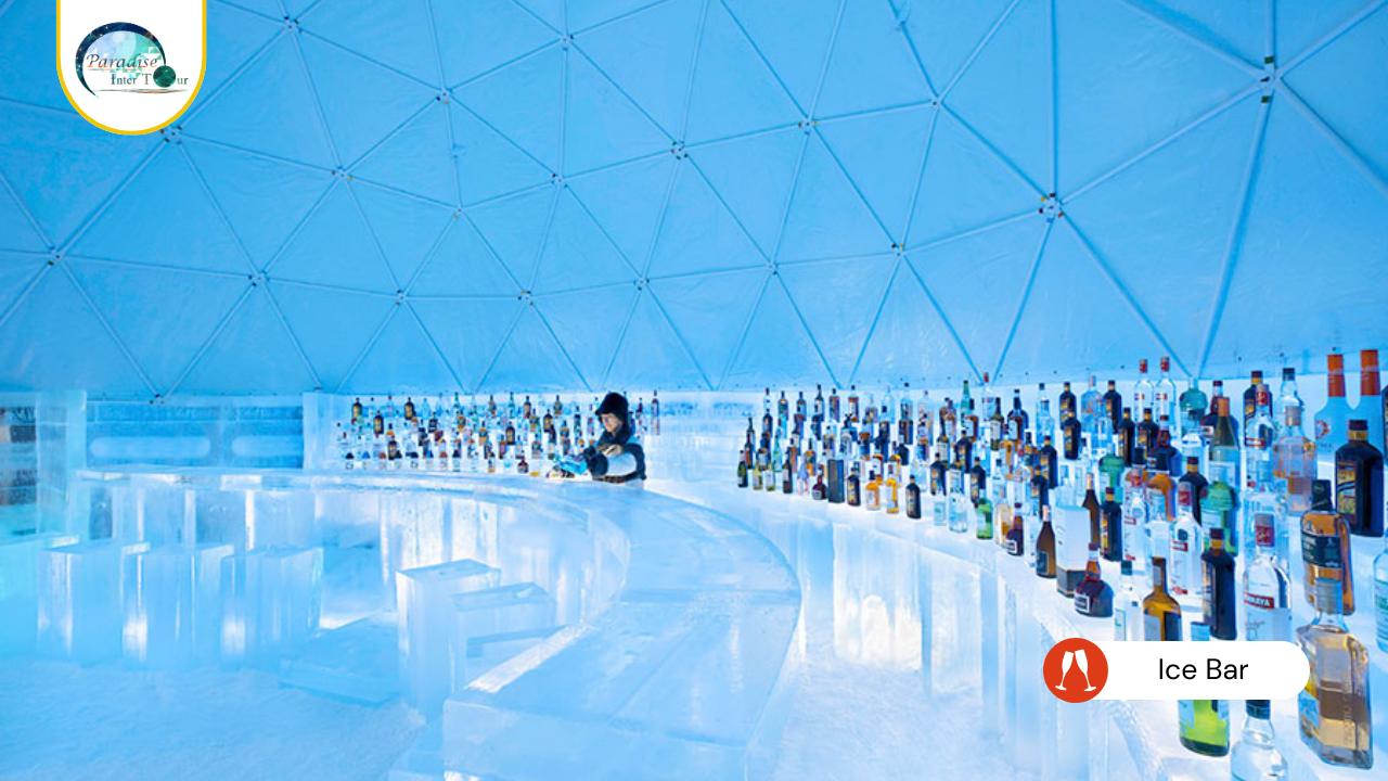 บาร์ที่เรียกได้ว่าทำมาจากน้ำแข็งทั้งชิ้น ทั้งตัวบาร์ เก้าอี้ หรือแม้แต่แก้วก็ทำมาจากน้ำแข็งทั้งหมด ที่บาร์นี้มีเครื่องดื่มเรียงรายกันบนชั้นวางน้ำแข็ง และทำเครื่องดื่มที่มีแอลกอฮอล์และไม่มีแอลกอฮอล์ได้กว่า 50 เมนู