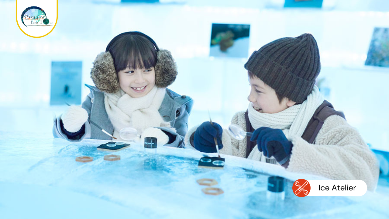 สวมวิญญาณศิลปินและไปทำงานคราฟต์ที่ Ice Aletlier ไม่ว่าจะเด็กหรือผู้ใหญ่ก็เพลิดเพลิน สนุกไปกับการแกะสลักแก้วน้ำแข็ง ทำพวงกุญแจเกล็ดหิมะ และการทดลองทำ Ice Soap Bubble ที่จะกลายเป็นคริสตัลที่ลอยได้เมื่อเป็นน้ำแข็ง
