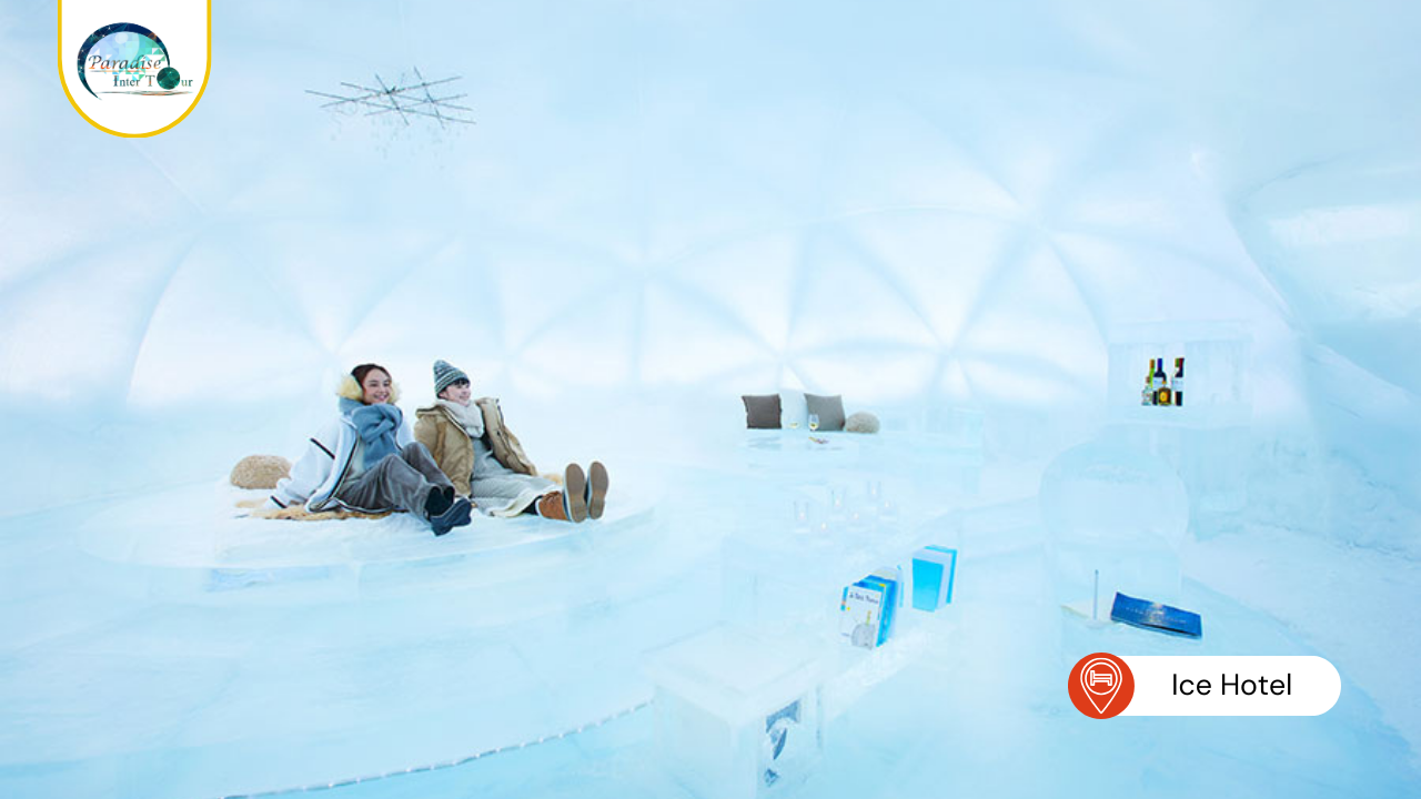 โรงแรมน้ำแข็งที่เราสามารถเข้าพักได้จริง โรงแรมรูปโดมสร้างจากน้ำแข็งก้อนเดียวทำให้ไม่มีรอยต่อ การตกแต่งภายในทั้งหมดทำมาจากน้ำแข็ง แต่ไม่ต้องกล้วว่าจะต้องทนนอนหนาวไป เพราะเขามีเตียงที่เหมาะกับสภาพอากาศ ทำให้เราสามารถพักผ่อนได้อย่างอบอุ่น นอนได้เต็มอิ่มถึงเช้าแน่นอนค่ะ