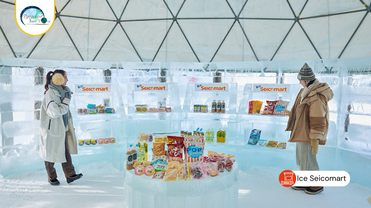 ร้านสะดวกซื้อที่สร้างจากน้ำแข็งทั้งร้าน ที่ที่คุณจะซื้อสินค้า ขนมต่าง ๆ ได้จากชั้นวางสินค้าที่ทำมาจากน้ำแข็ง และยังเป็นร้านค้าชื่อดังของฮอกไกโดด้วย และในนี้ยังมีเมนู Ice Chef โอนิกิริทำสดใหม่และเครื่องเคียงขายด้วยนะคะ น่าลองมาก ๆ