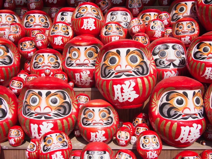 “ตุ๊กตาดารุมะ (Daruma)” ถือว่าเป็นตุ๊กตาประจำชาติ ประเทศญี่ปุ่น และเป็นเครื่องรางยอดนิยมของคนญี่ปุ่นเลยก็ว่าได้ มีลักษณะกลม ลำตัวสีแดง มีดวงตากลมโตเพียงข้างเดียว ซึ่งลักษณะอ้วนกลมคล้ายคลึงกับตุ๊กตาล้มลุก ไม่มีแขน และขา มีจุดเด่นคือไม่มีลูกตาสีดำ! มีคิ้ว กับหนวดเคราดกที่ต่างซ่อนความหมายไว้อยู่บนใบหน้ามากมาย