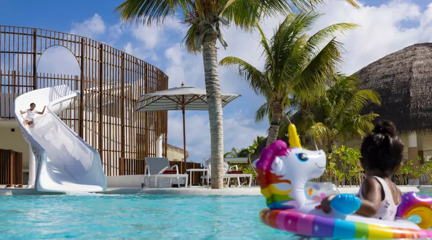 Centara Mirage Lagoon Maldives ส่วนหนึ่งของโรงแรมในเครือเซ็นทารา ที่มีการออกแบบและบริการเพื่อให้เหมาะสมกับครอบครัวที่ต้องการพักผ่อนในบรรยากาศที่สนุกสนานและเต็มไปด้วยการผจญภัยในธีมต่าง ๆ โดยปกติจะมีการออกแบบในสไตล์ที่เป็นเอกลักษณ์ เช่น ธีมทะเล แคริบเบียน หรือผจญภัยในดินแดนแฟนตาซีรีสอร์ทนี้มีสิ่งอำนวยความสะดวกสำหรับครอบครัวมากมาย เช่น สวนน้ำที่มีสระว่ายน้ำ แม่น้ำล่องแก่ง และสนามเด็กเล่นน้ำ มีสวนน้ำขนาดใหญ่กลางแจ้ง ซึ่งเป็นหนึ่งในจุดเด่นที่ดึงดูดทั้งเด็กและผู้ใหญ่ และแม่น้ำล่องแก่ง (Lazy River) ให้คุณลอยตัวไปตามกระแสน้ำที่ไหลเอื่อย เพลิดเพลินกับวิวสวยๆ ของรีสอร์ท พร้อมสไลเดอร์หลากหลายแบบสำหรับเด็กๆ รวมถึงผู้ใหญ่ที่ชอบความตื่นเต้น