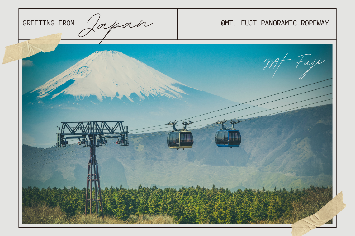 4. ฟูจิซัง พาโนรามิคโรปเวย์ (Mt. Fuji Panoramic Ropeway) – ถ้าอยากเห็นฟูจิซังแบบพาโนรามา 360 องศา ต้องขึ้นกระเช้าลอยฟูจิซัง! กระเช้านี้จะพาขึ้นไปยังยอดเขาเทนโจ ที่สามารถมองเห็นฟูจิซังจากมุมสูง พร้อมทะเลสาบที่อยู่เบื้องล่าง