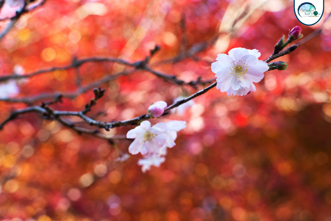 ดอกซากุระที่บานสะพรั่งท่ามกลางฉากหลังของใบไม้เปลี่ยนสี บอกเลยว่าแม้แต่คนญี่ปุ่นเองก็ยังต้องเดินทางมาสัมผัสด้วยตัวเองสักครั้ง
