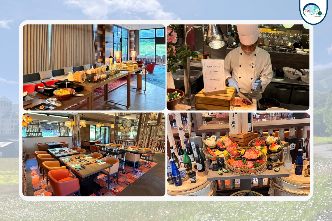 มื้ออาหารถือเป็นอีกหนึ่งไฮไลต์ ทุกมื้อเป็นบุฟเฟ่ต์นานาชาติแบบจัดเต็ม มีทั้งอาหารญี่ปุ่น อาหารฝรั่ง อาหารเอเชีย ของหวาน เครื่องดื่มทุกประเภทเสิร์ฟแบบไม่อั้น รวมถึงไวน์ เบียร์ และค็อกเทล พนักงานทุกคนบริการดีมาก ยิ้มแย้ม ใส่ใจตลอด