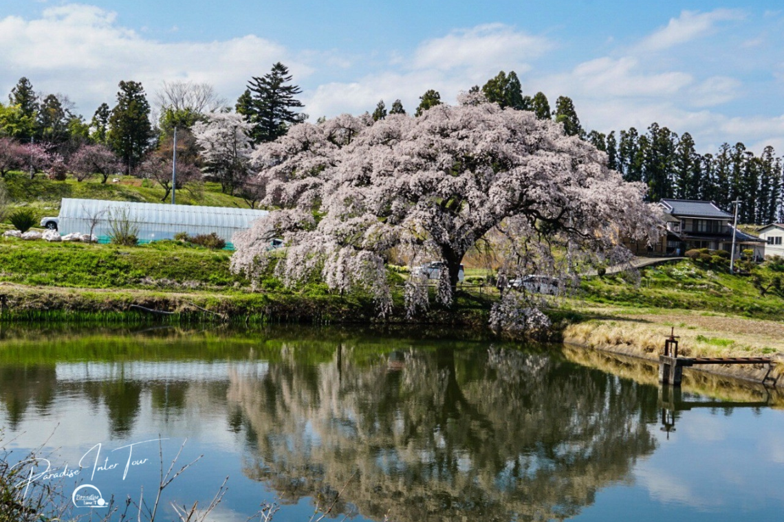 ต้นซากุระพันธุ์กิ่งย้อยที่มีความงดงามโดดเด่น ดอกจะบานในช่วงกลางถึงปลายเดือนเมษายนของทุกปี แม้จะเป็นพื้นที่ส่วนบุคคล แต่จะเปิดให้เข้าชมในช่วงดอกไม้บาน เป็นจุดยอดนิยมของช่างภาพ โดยเฉพาะภาพเงาสะท้อนของซากุระบนผิวน้ำของอ่างเก็บน้ำใกล้เคีย