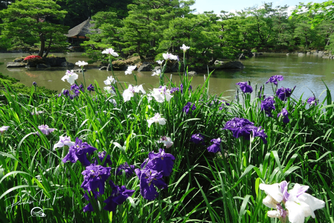 สวนญี่ปุ่นแบบเดินชมรอบบ่อน้ำ ที่ยังคงกลิ่นอายของยุคมุโรมาจิ ในช่วงกลางเมษายนจะมีดอกซากุระบาน เดือนพฤษภาคมเต็มไปด้วยดอกโรโดเดนดรอน ดอกไอริส และดอกไม้อื่น ๆ ส่วนต้นฤดูใบไม้ร่วงจะเป็นช่วงของดอกฮากิ (Japanese bush clover)