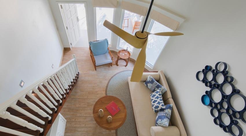 ห้องพักวิลล่าติดริมทะเล พร้อมให้ซึมซับกับบรรยากาศสุดชิล ขนาดห้องพัก กว้างขวาง 87 ตารางเมตร ที่มีห้องนั่งเล่นตกแต่งสไตล์มินิมอล ห้องนอนใหญ่ที่มีเตียงขนาดคิงไซส์บนชั้นลอย และห้องน้ำขนาดใหญ่พร้อมอ่างอาบน้ำกลางแจ้ง ด้วยดีไซน์ตกแต่งที่สว่างและให้ความรู้สึกโปร่งโล่งด้วยโทนสีอบอุ่นและอ่อนโยน ห้องบีชสวีทเหมาะสำหรับครอบครัวที่มีผู้ใหญ่ไม่เกิน 3 ท่าน หรือผู้ใหญ่ไม่เกิน 2 ท่านและเด็กไม่เกิน 2 ท่าน