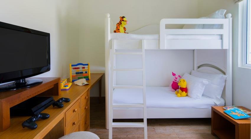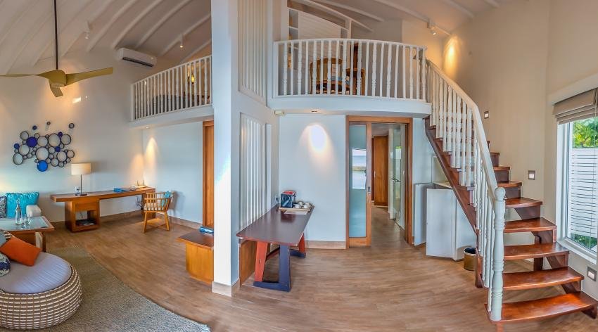 ห้องพักวิลล่ากลางน้ำ ที่เหมาะสำหรับครอบครัว ที่ออกแบบมาเพื่อความต้องการพิเศษของครอบครัวที่มีเด็กเล็กพักด้วย มีห้องนอนสำหรับเด็กเล็กที่มีเตียงสองชั้นและเครื่องเล่นเกม ห้องน้ำสามารถมองเห็นวิวทะเลได้ เท่านั้นยังไม่พอ ยังมีระเบียงให้ออกมานอนรับแสงแดดและชมวิวสวยๆของทะเลได้ วิลล่ามีพื้นที่ 93 ตารางเมตร เหมาะสำหรับผู้ใหญ่ไม่เกิน 3 ท่าน หรือผู้ใหญ่ไม่เกิน 2 ท่านและเด็กไม่เกิน 2 ท่าน