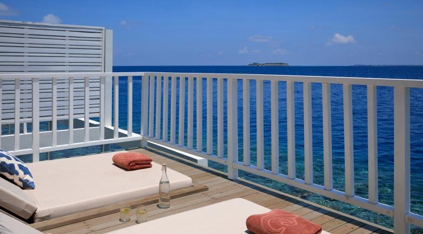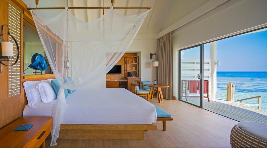 ห้องดีลักซ์ วอเตอร์วิลล่า ที่มีขนาดกว้างขวางถึง 87 ตารางเมตร ตั้งอยู่ทางด้านเหนือของเกาะ มีดีไซน์ตกแต่งที่ทำให้รู้สึกผ่อนคลาย ใช้โทนสีขาวและแต่งแต้มด้วยสีต่างๆ และใช้เฟอร์นิเจอร์ที่ทำจากหวายและไม้เนื้อแข็ง ภายในห้องสามารถเห็นวิวทะเลสวยๆและยังสามารถมองเห็นพระอาทิตย์ขึ้นในตอนเช้า วิลล่าเหมาะสำหรับผู้ใหญ่ไม่เกิน 3 ท่าน หรือผู้ใหญ่ไม่เกิน 2 ท่านและเด็กไม่เกิน 1 ท่าน