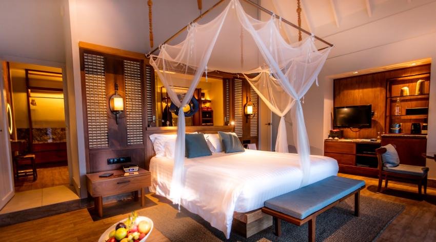 รีสอร์ทแห่งนี้ มีห้องพักกลางน้ำและบนหาด รวมทั้งหมด 112 หลัง ซึ่งแต่ละห้องพัก แต่ละหลัง สามารถที่จะเห็นวิวทะเลได้อย่างกว้างขวางมากๆ ซึ่งแต่ละห้อง จะแตกต่างกันออกไป ตามประเภทห้องพัก รีสอร์ทมีห้องทั้งหมด