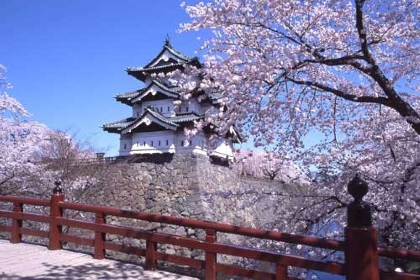 เป็นหนึ่งในสามปราสาทที่มีแนวรั้วกำแพงหินที่สวยที่สุดในญี่ปุ่น ถ้าเดินเล่นรอบๆปราสาทในช่วงที่ดอกซากุระบาน ก็จะออกดอกสวยสะพรั่งไปทั่วบริเวณ และนอกจากจะฟินกับซากุระในตอนกลางวันแล้ว ในตอนกลางคืนก็ยังเปิดให้เข้าชมอีกด้วย
