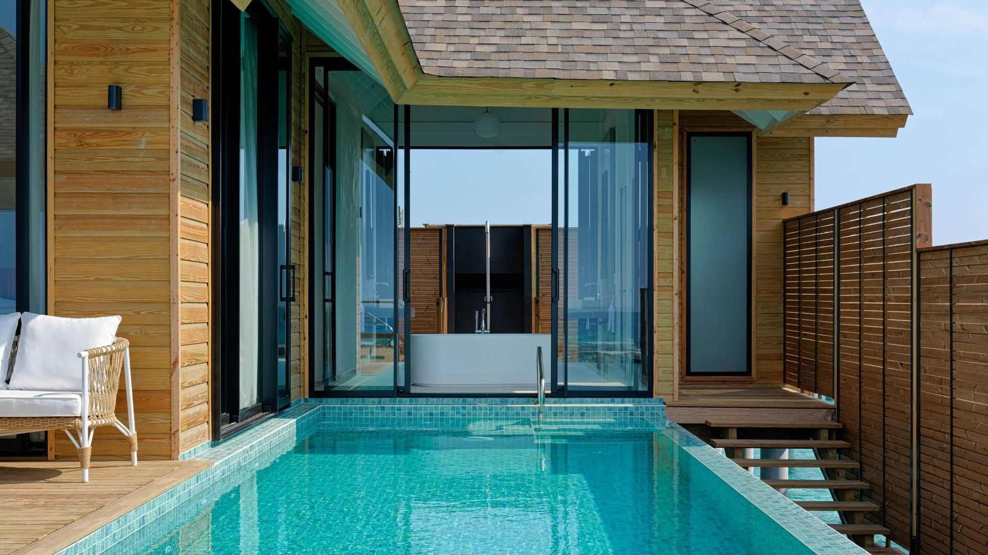 ห้อง Water Pool Villa Lagoon View  ห้องขนาด 180 ตารางเมตร รองรับผู้ใหญ่ 2 ท่าน และเด็ก 1 ท่าน หรือผู้ใหญ่ 3 ท่าน