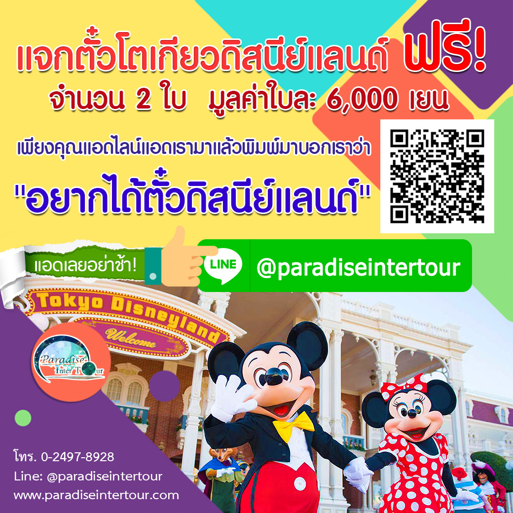 หรือแอดไลน์ @paradiseintertour (มี @ ด้วยจ้า)