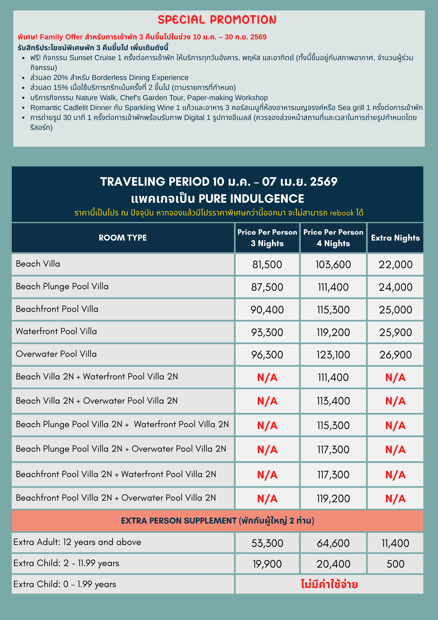 พิเศษ! Family Offer สำหรับการเข้าพัก 3 คืนขึ้นไปในตั้งแต่วันนี้ – 30 SEP 2026