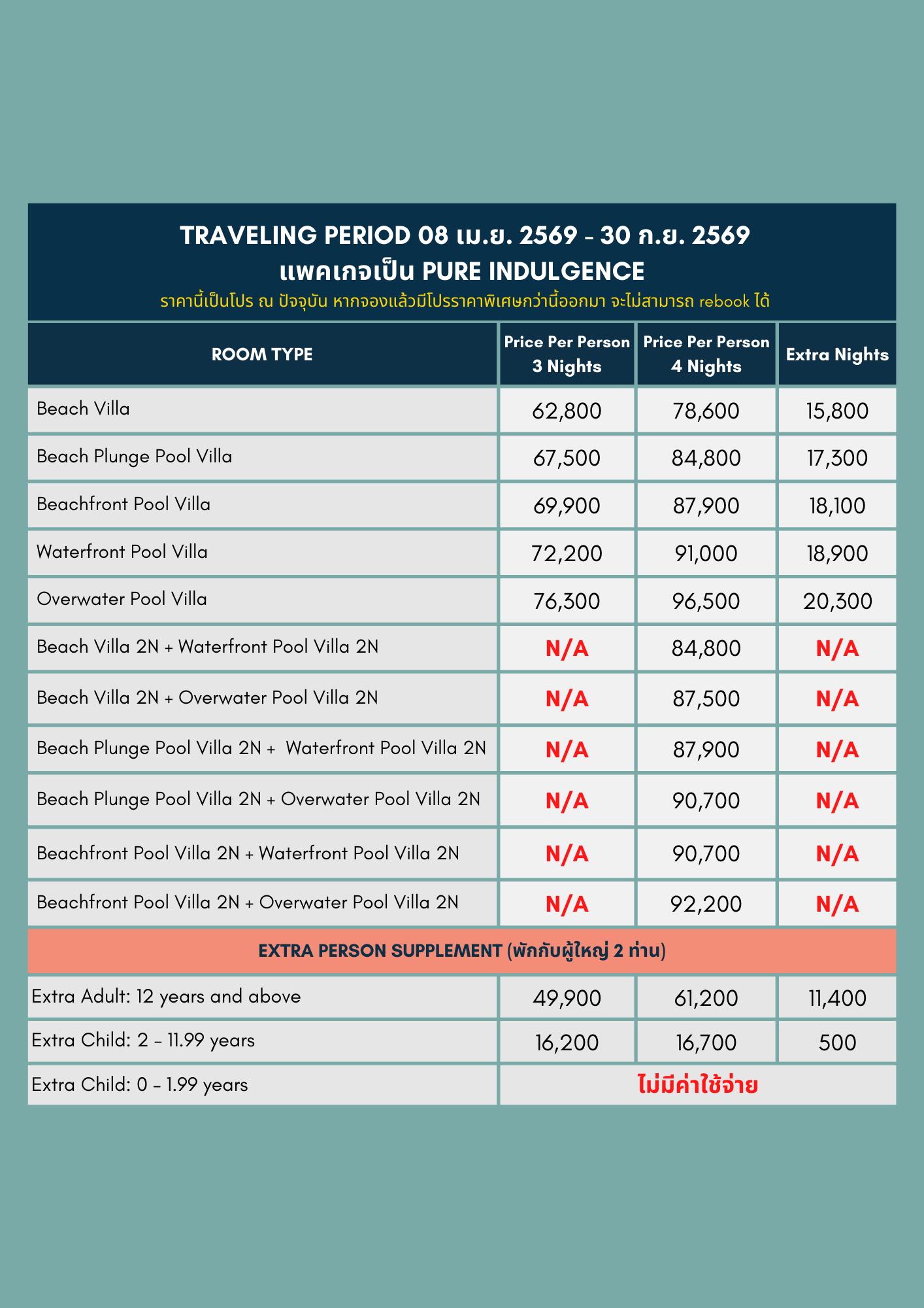 หมายเหตุ: DUSIT THANI อนุญาตให้เด็กเข้าพักได้