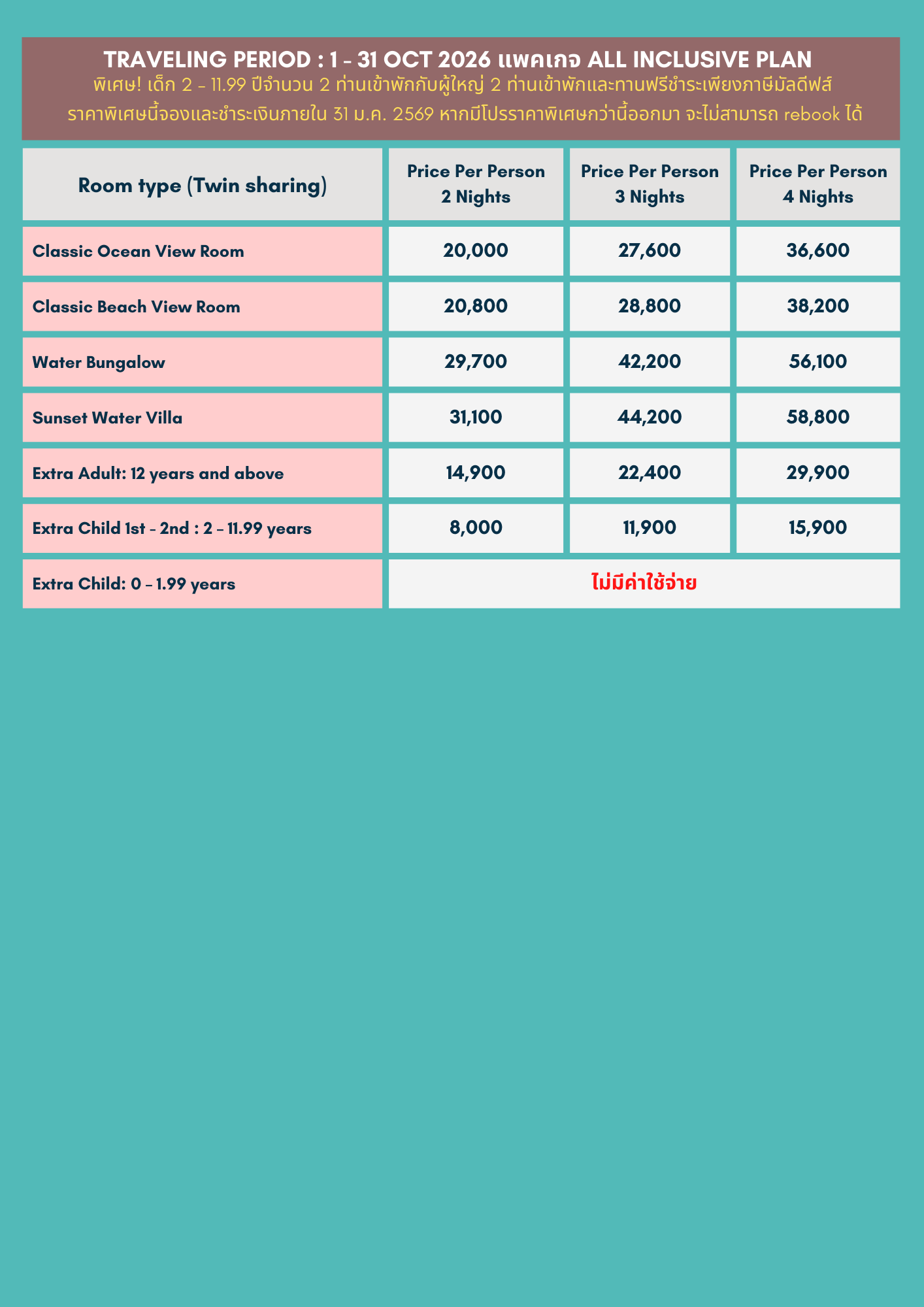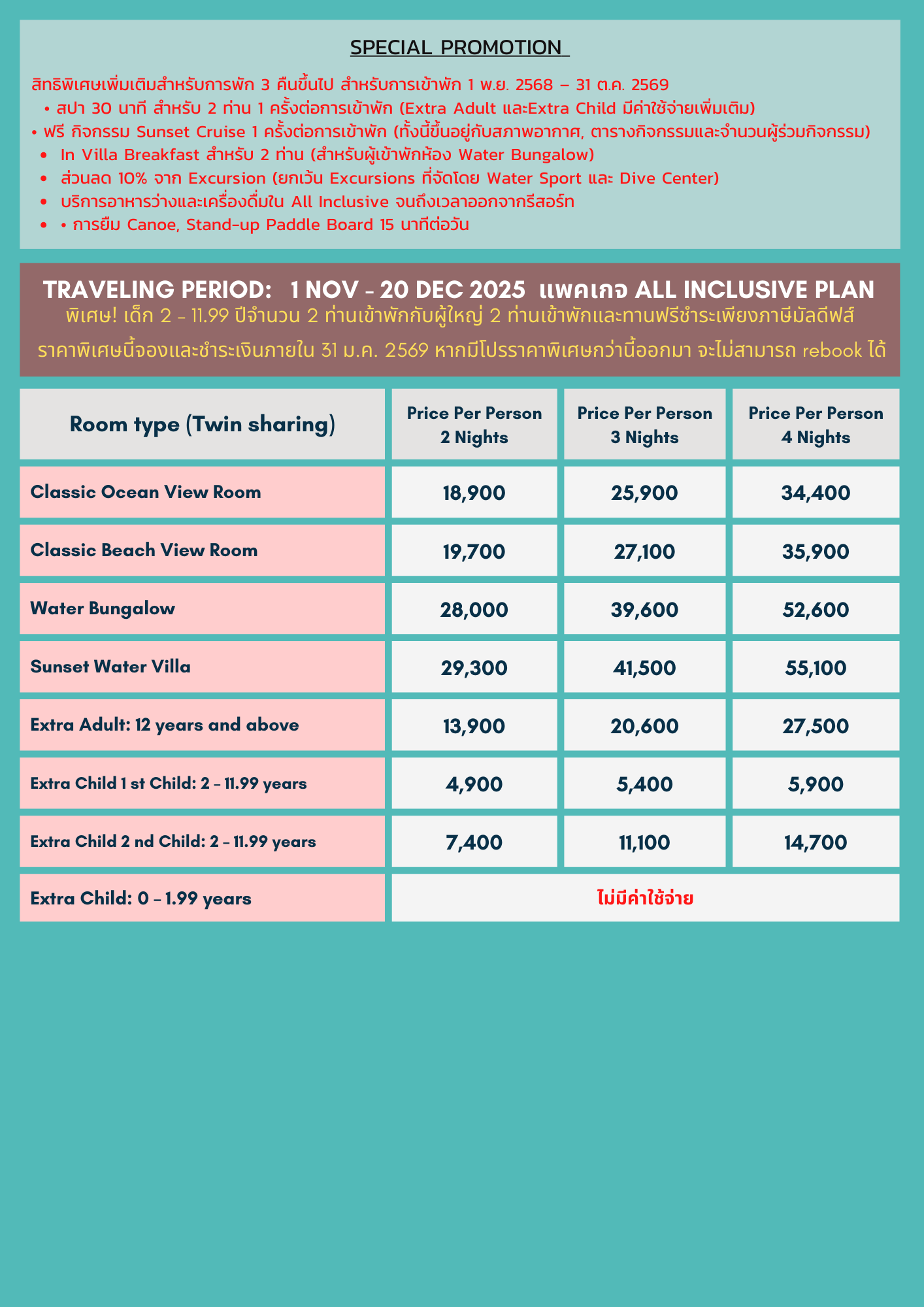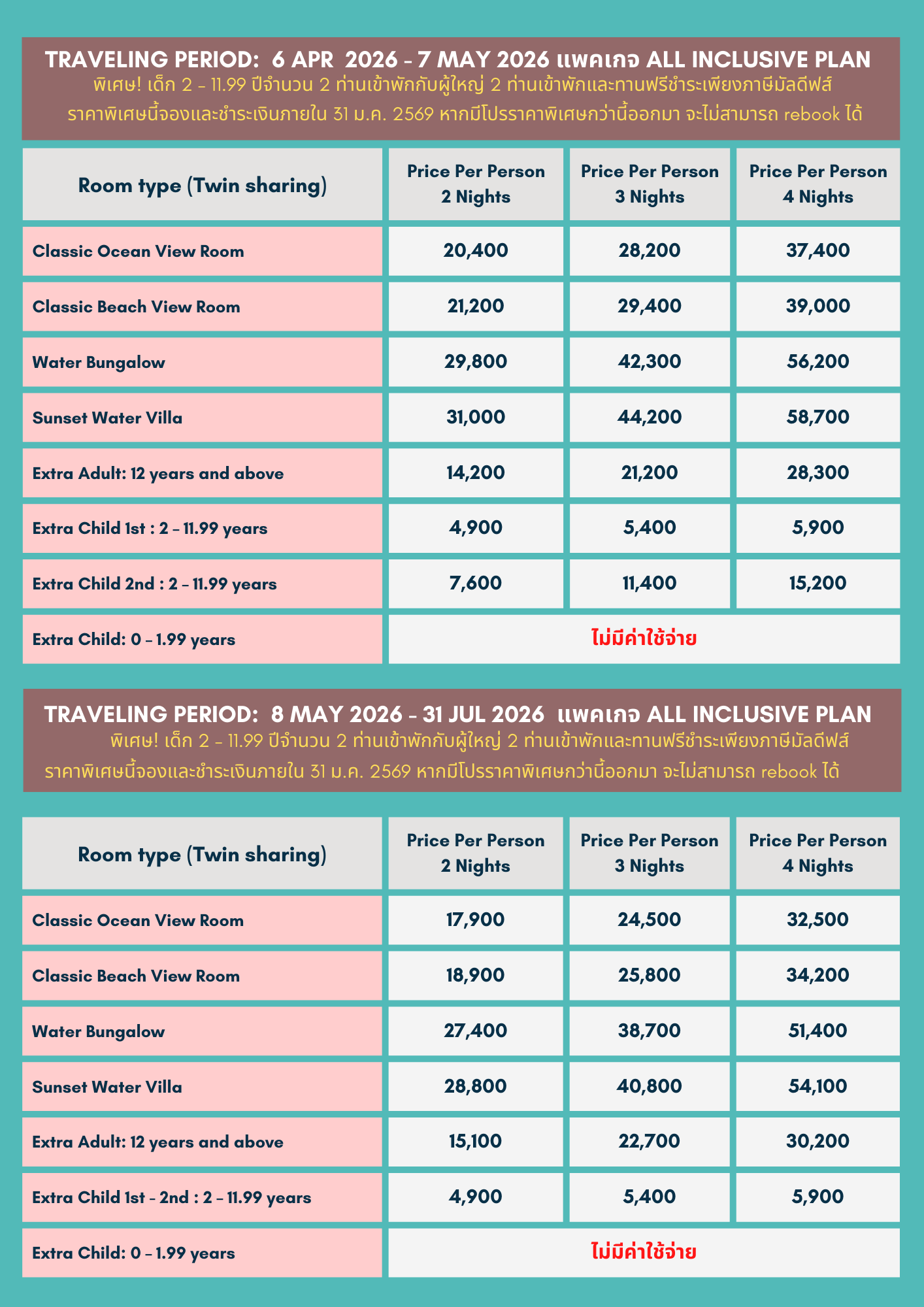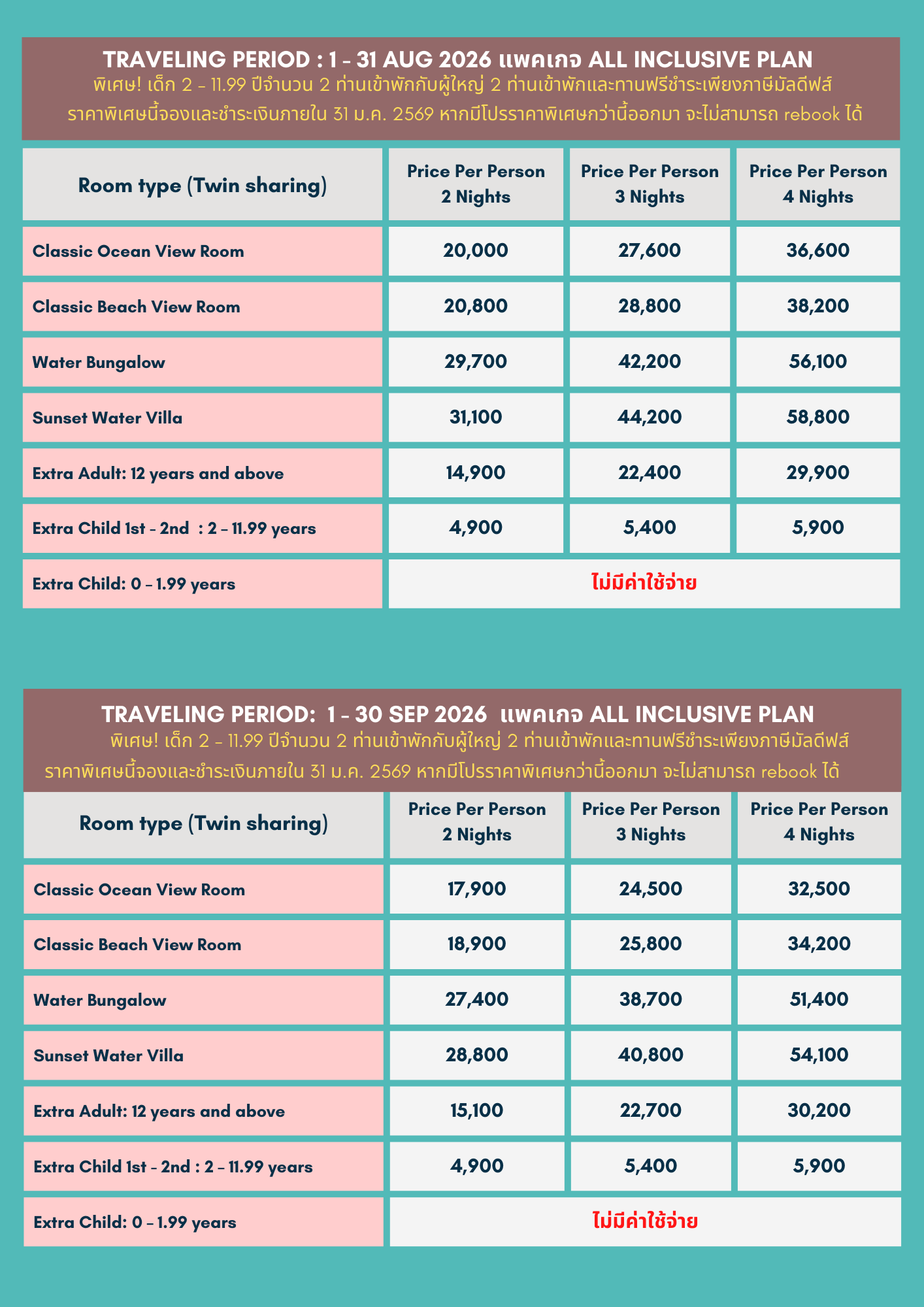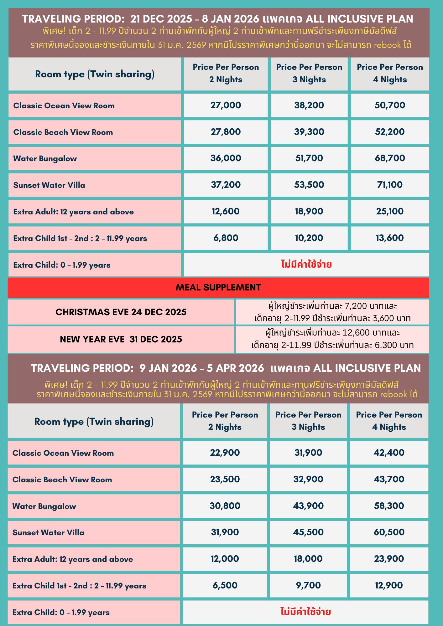 - รวมแพกเกจ All Inclusive รายละเอียดด้านล่าง