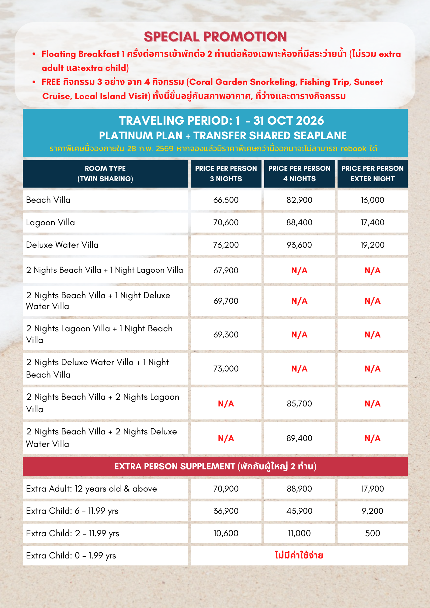สำหรับการเข้าพัก 1 NOV 2025 – 31 OCT 2026