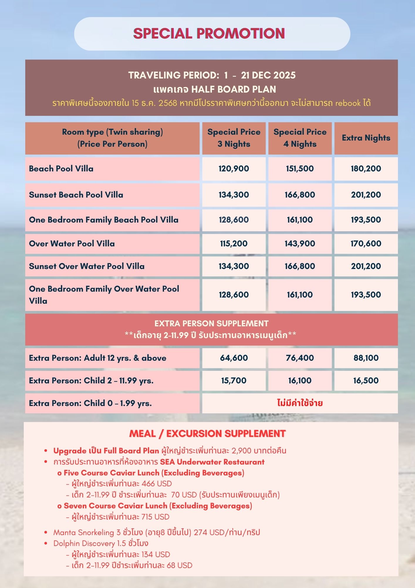 ราคาพิเศษห้องกลางน้ำ ราคาเริ่มต้นเพียงท่านละ