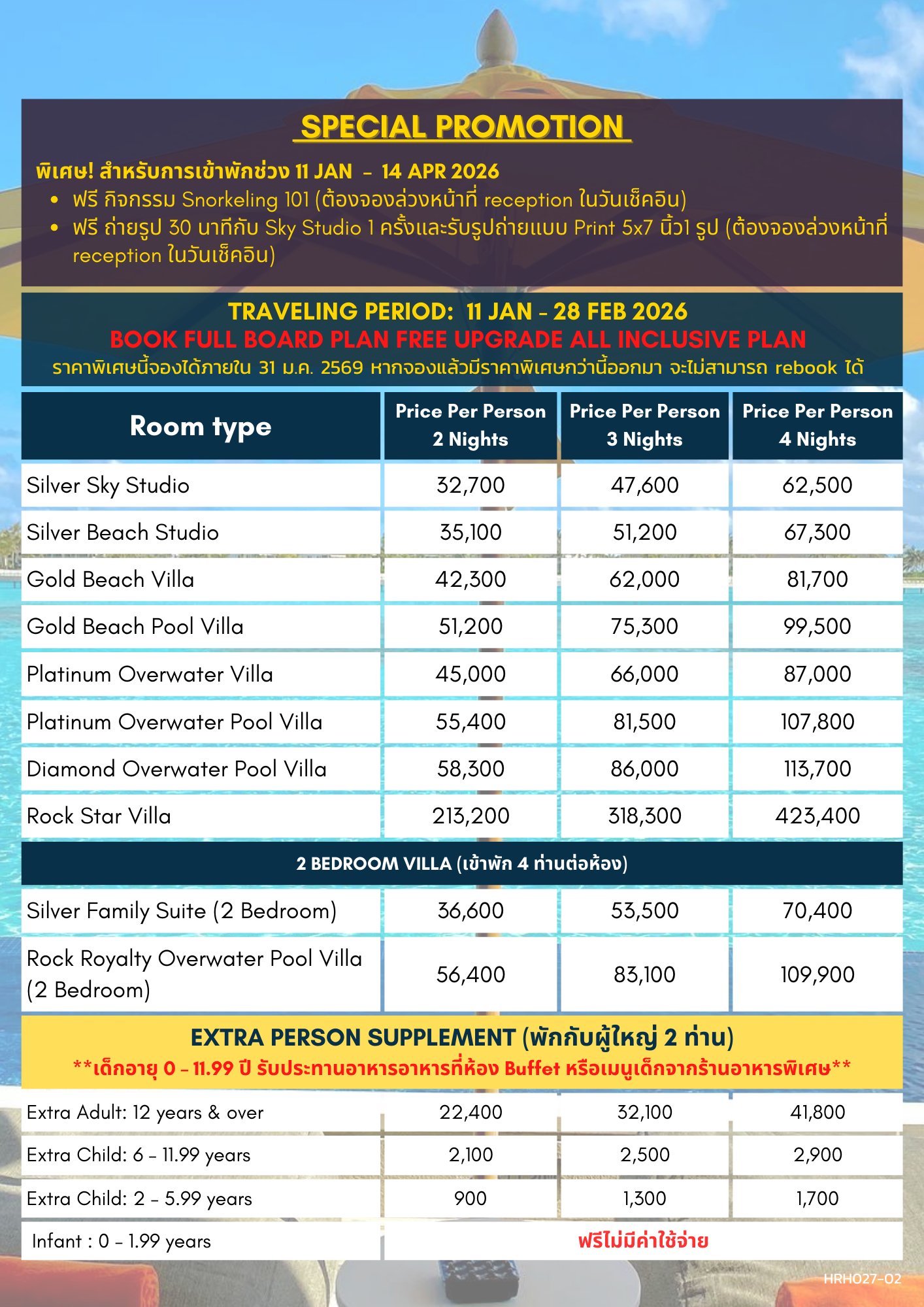 – ห้องพักตามแพกเกจที่เลือก