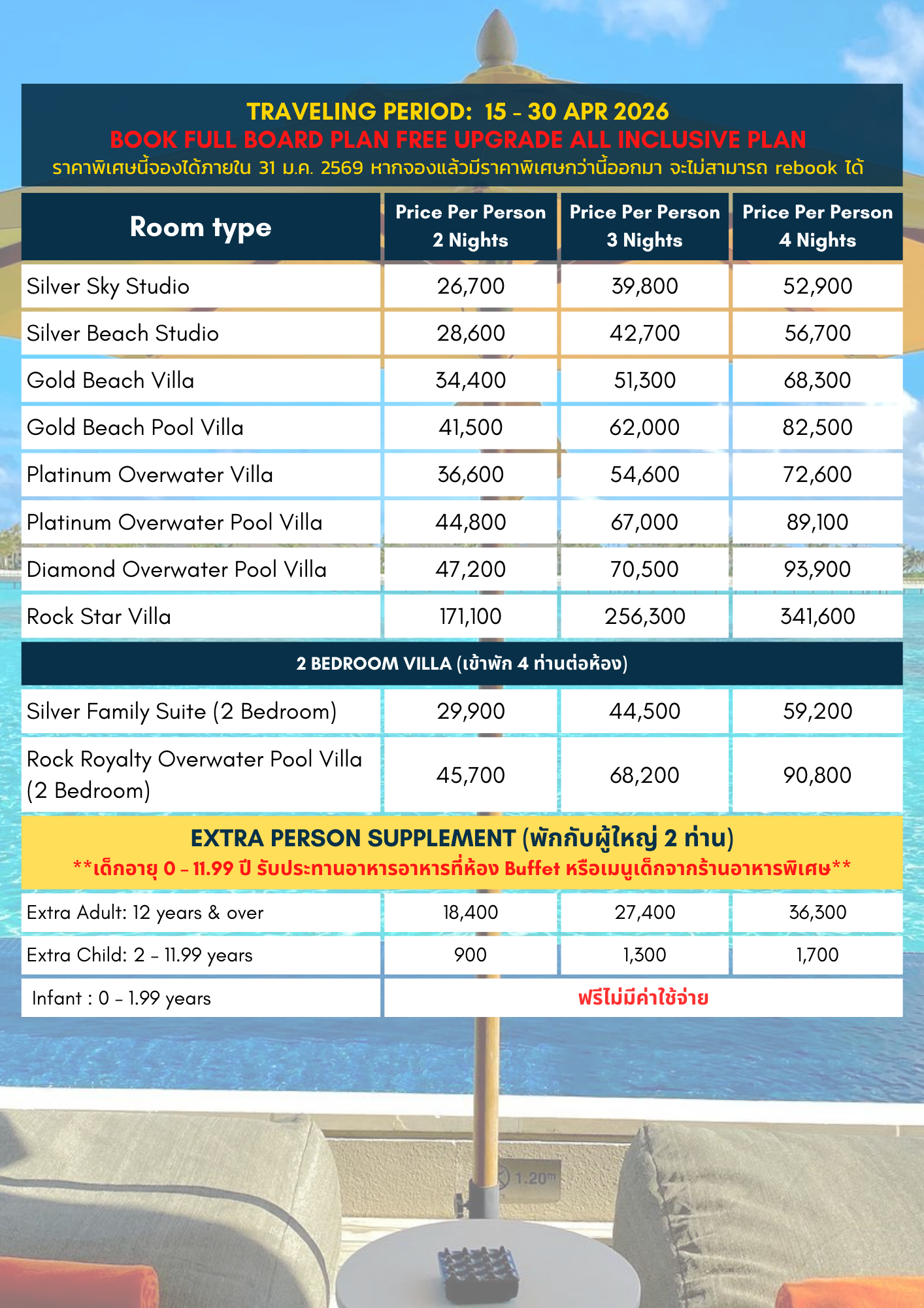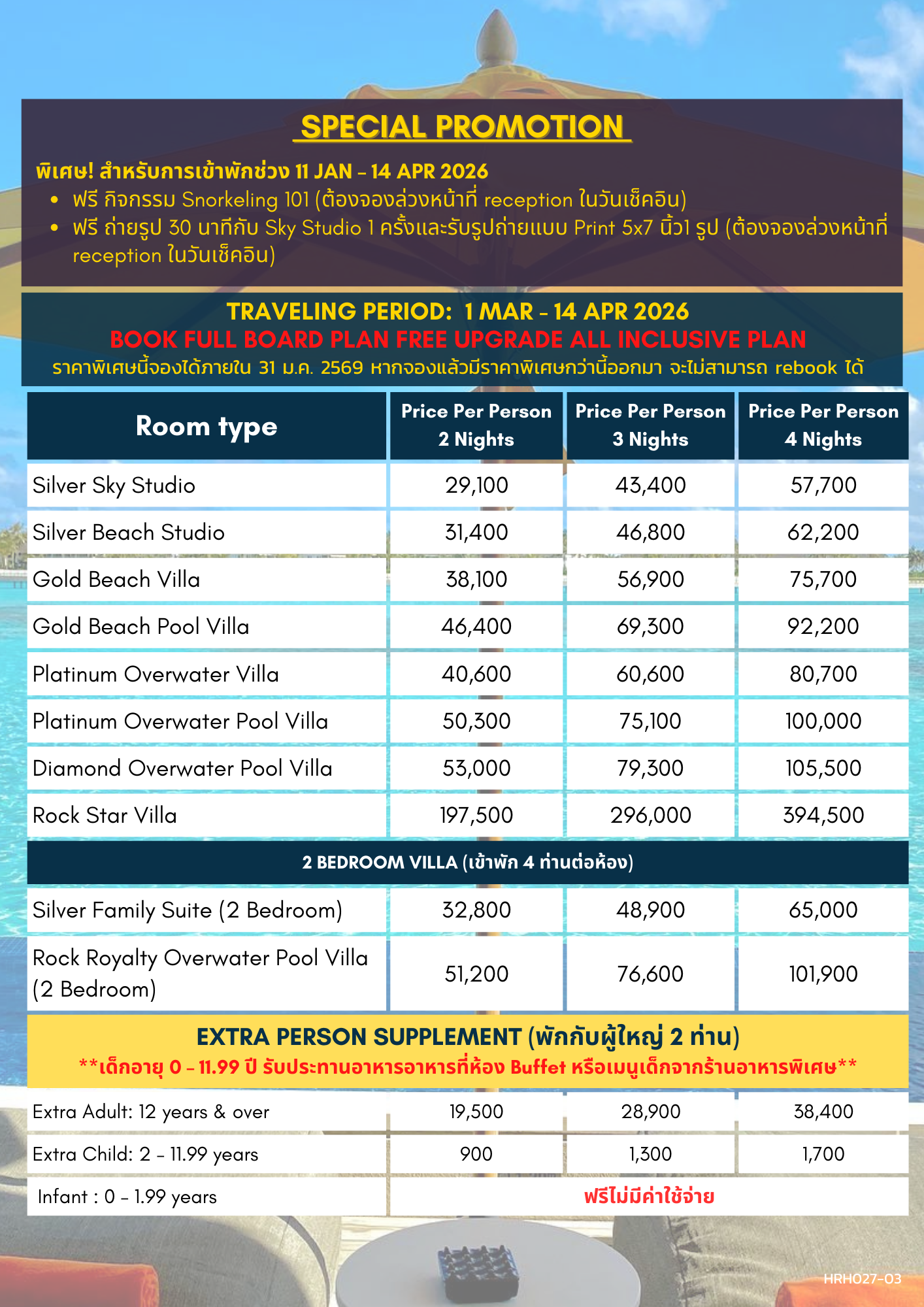 หมายเหตุ : HARD ROCK อนุญาตให้เด็กเข้าพักกลางน้ำได้