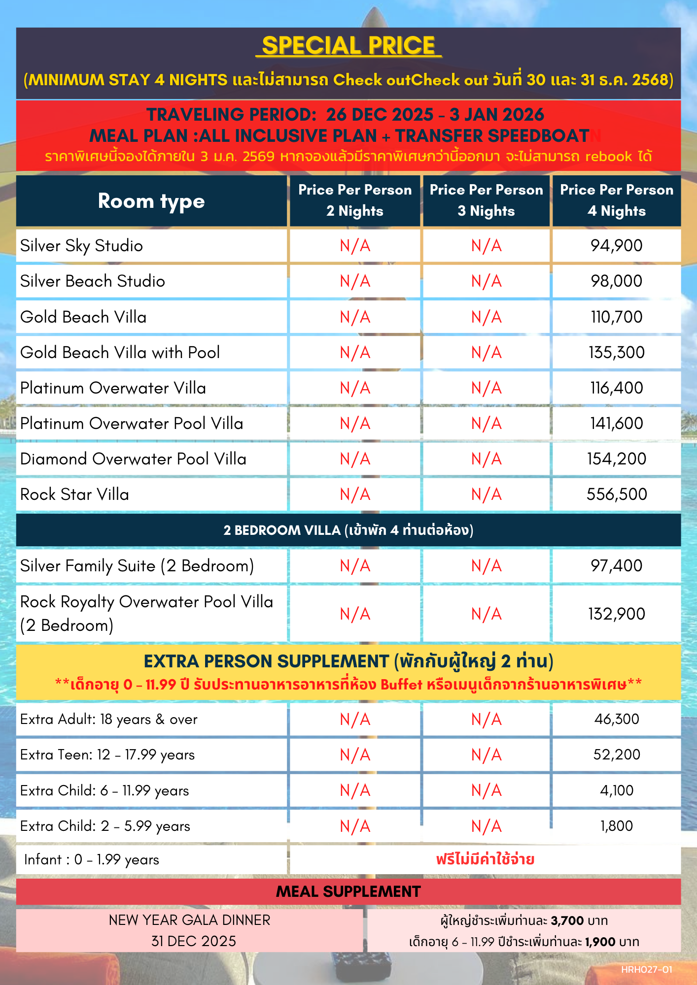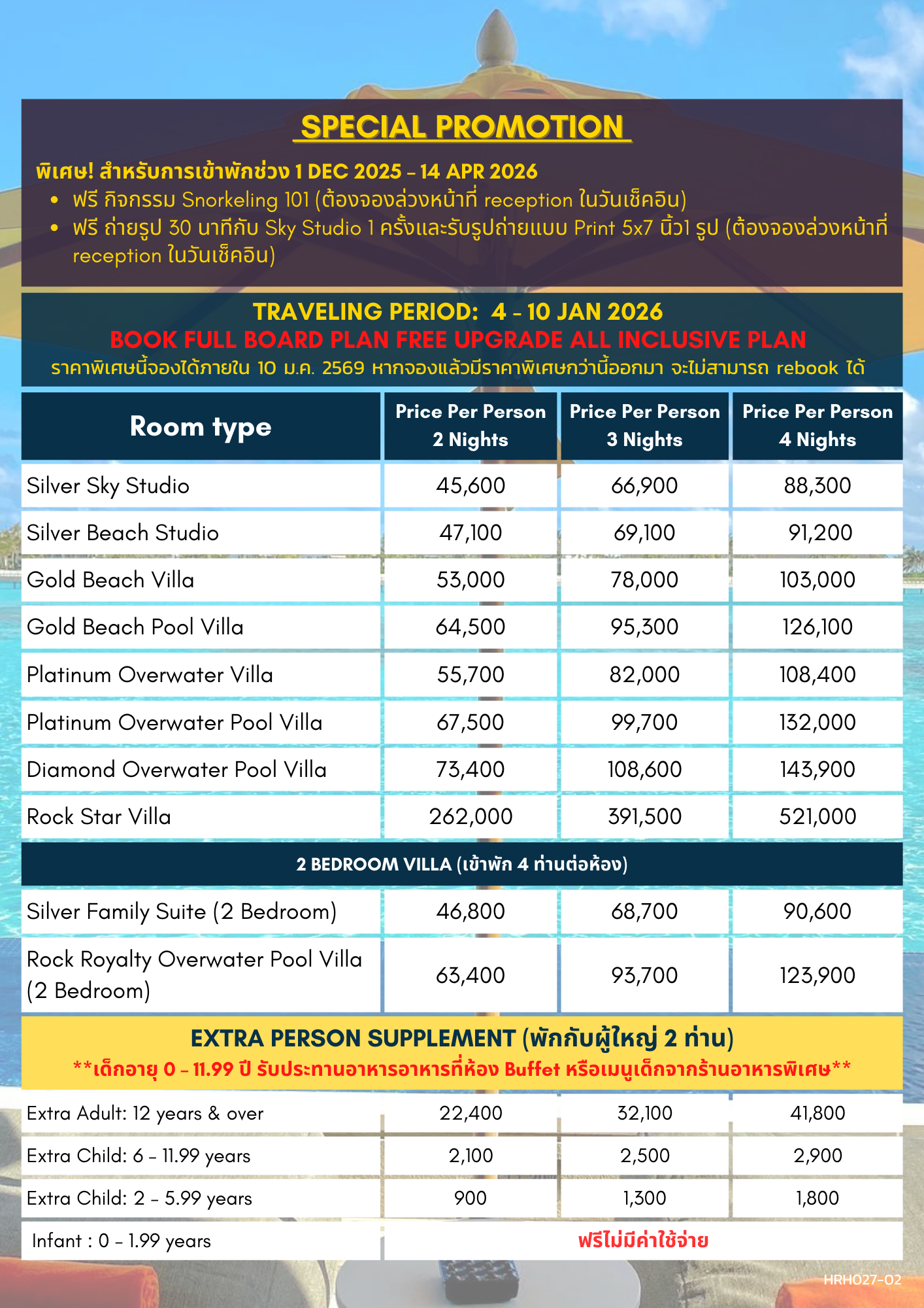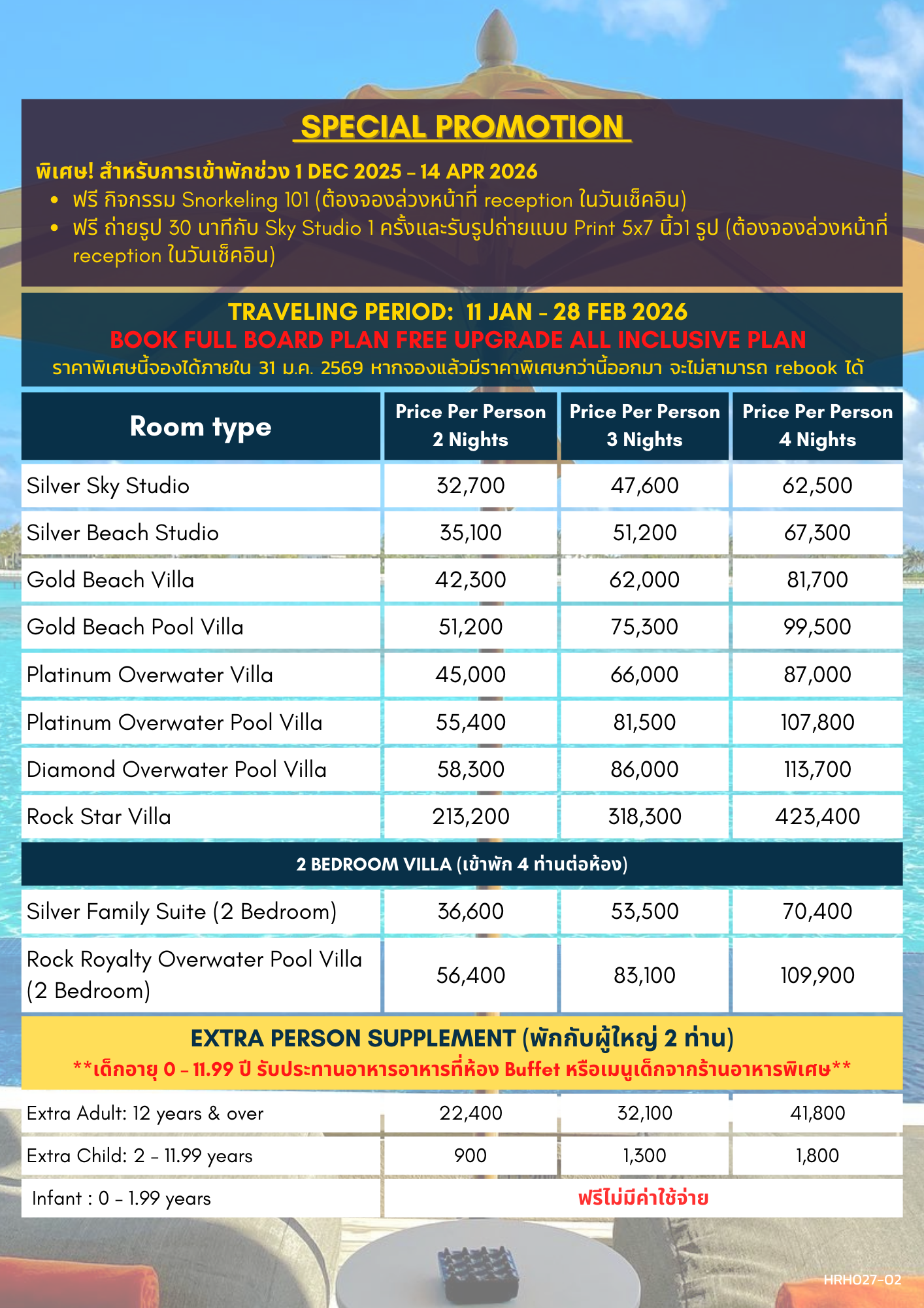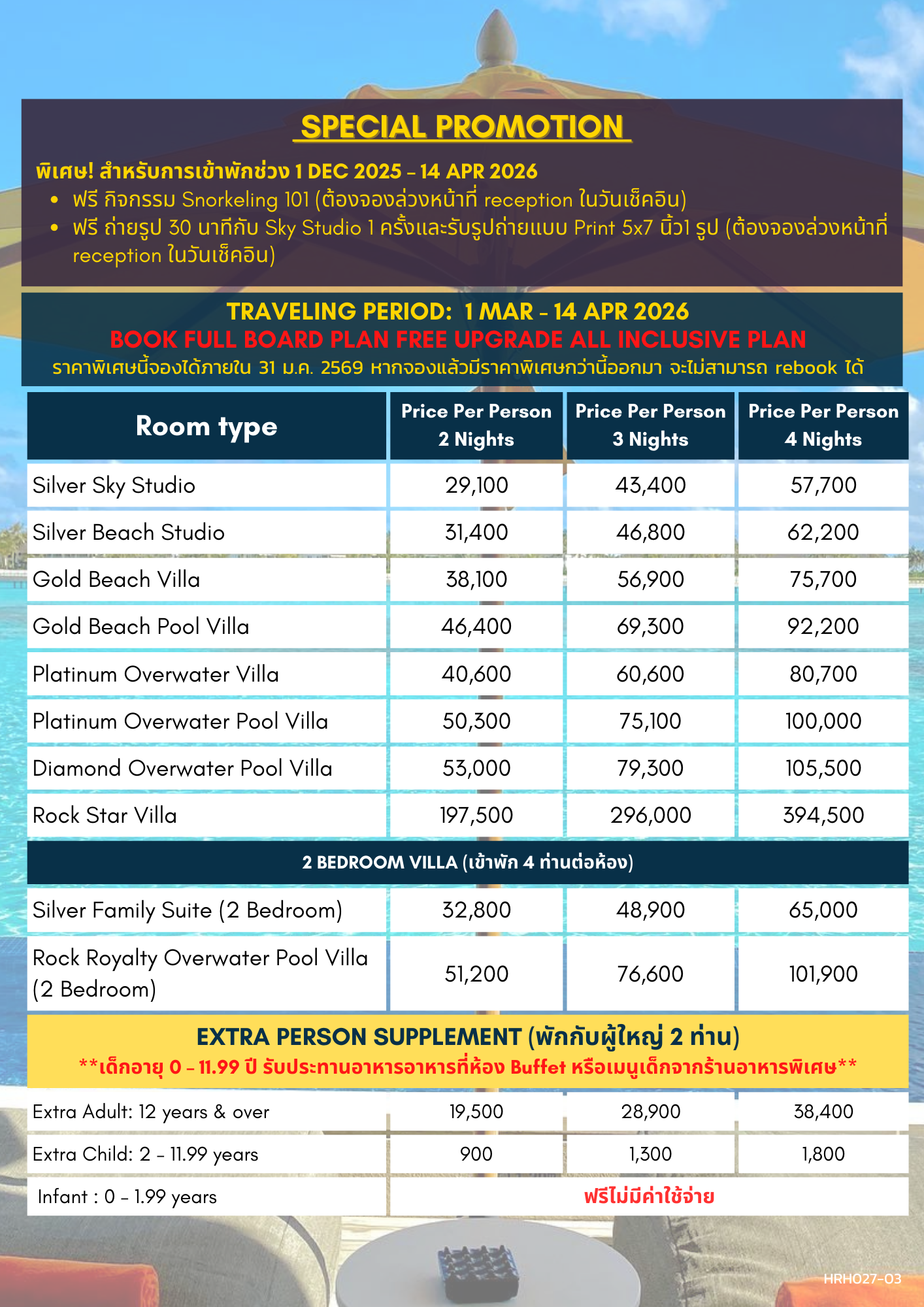 หมายเหตุ : HARD ROCK อนุญาตให้เด็กเข้าพักกลางน้ำได้