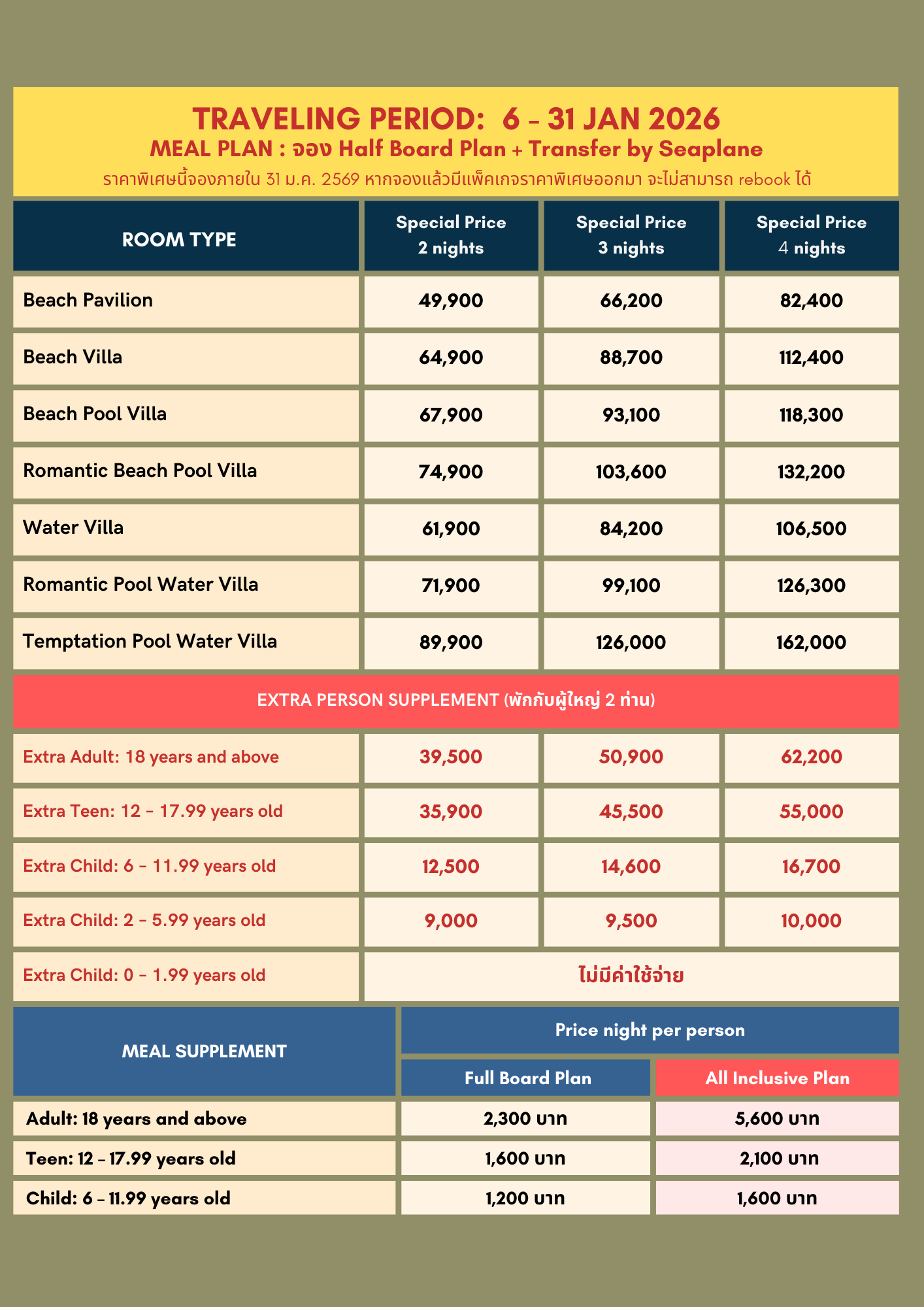 พิเศษ! สำหรับการเข้าพักช่วงวันนี้ - 22 DEC 2026