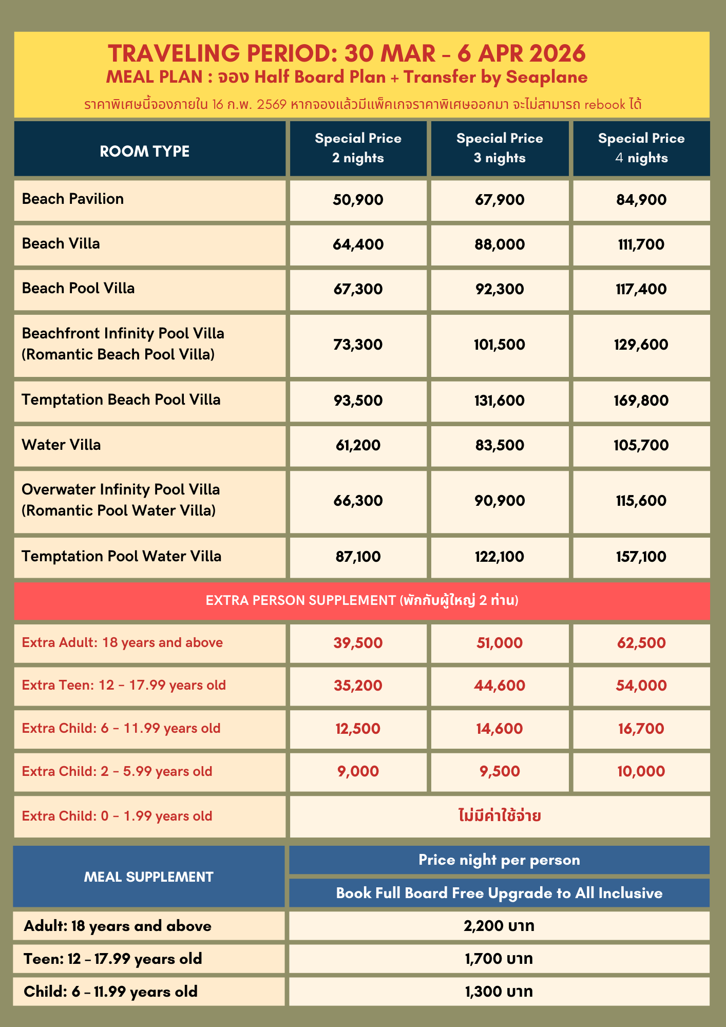หมายเหตุ: LUX* South Ari Atoll อนุญาตให้เด็กเข้าพักได้