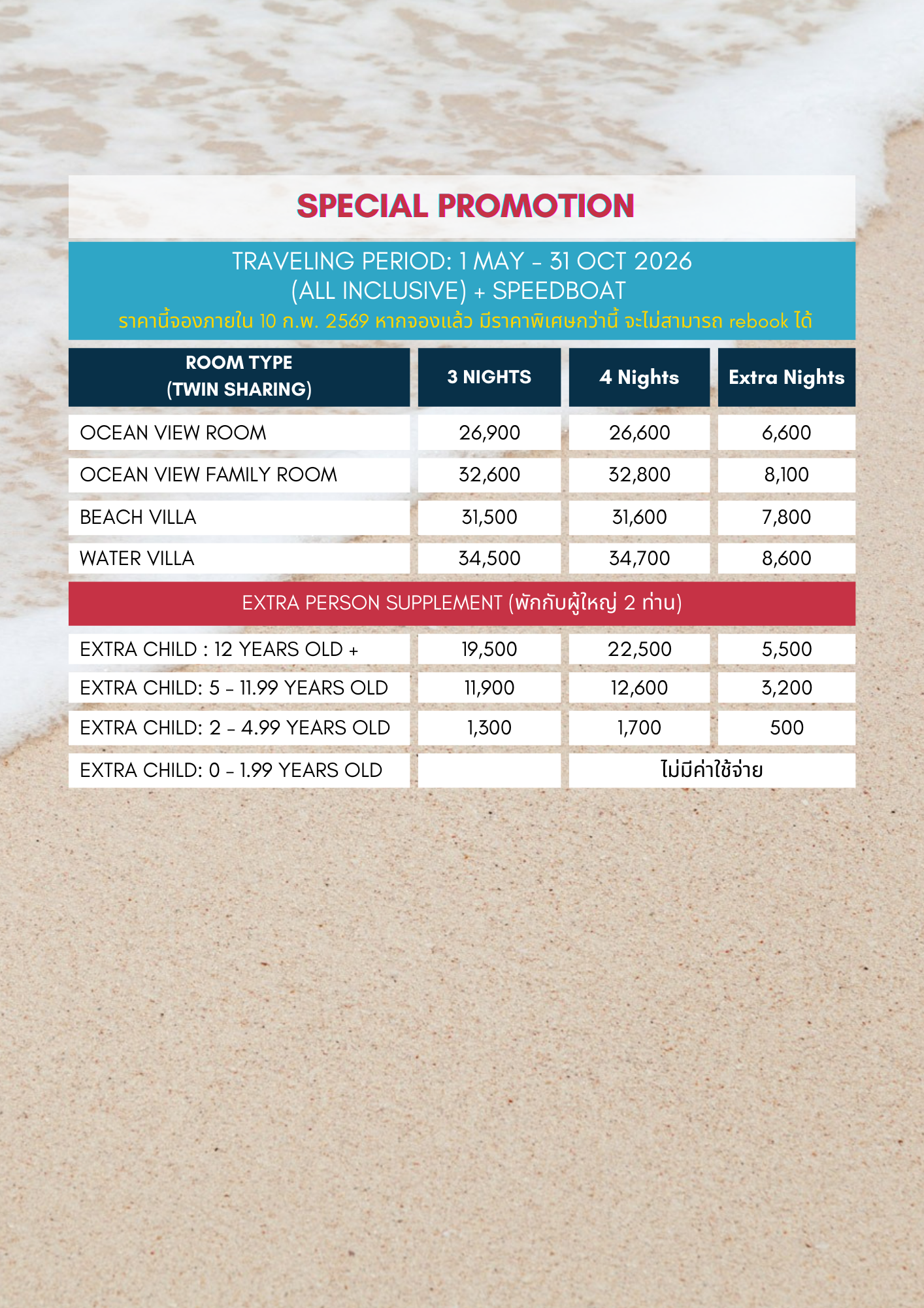 แพ็คเกจโปรโมชั่นนี้ สามารถเดินทางด้วยตนเองทุกวัน