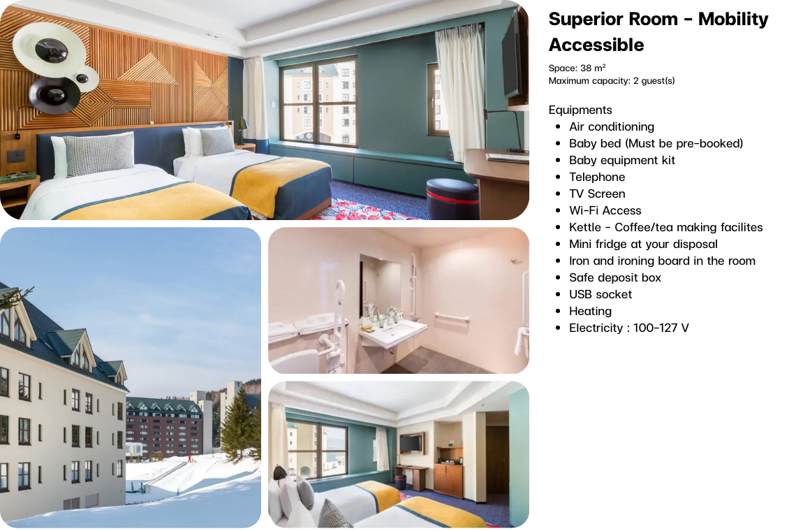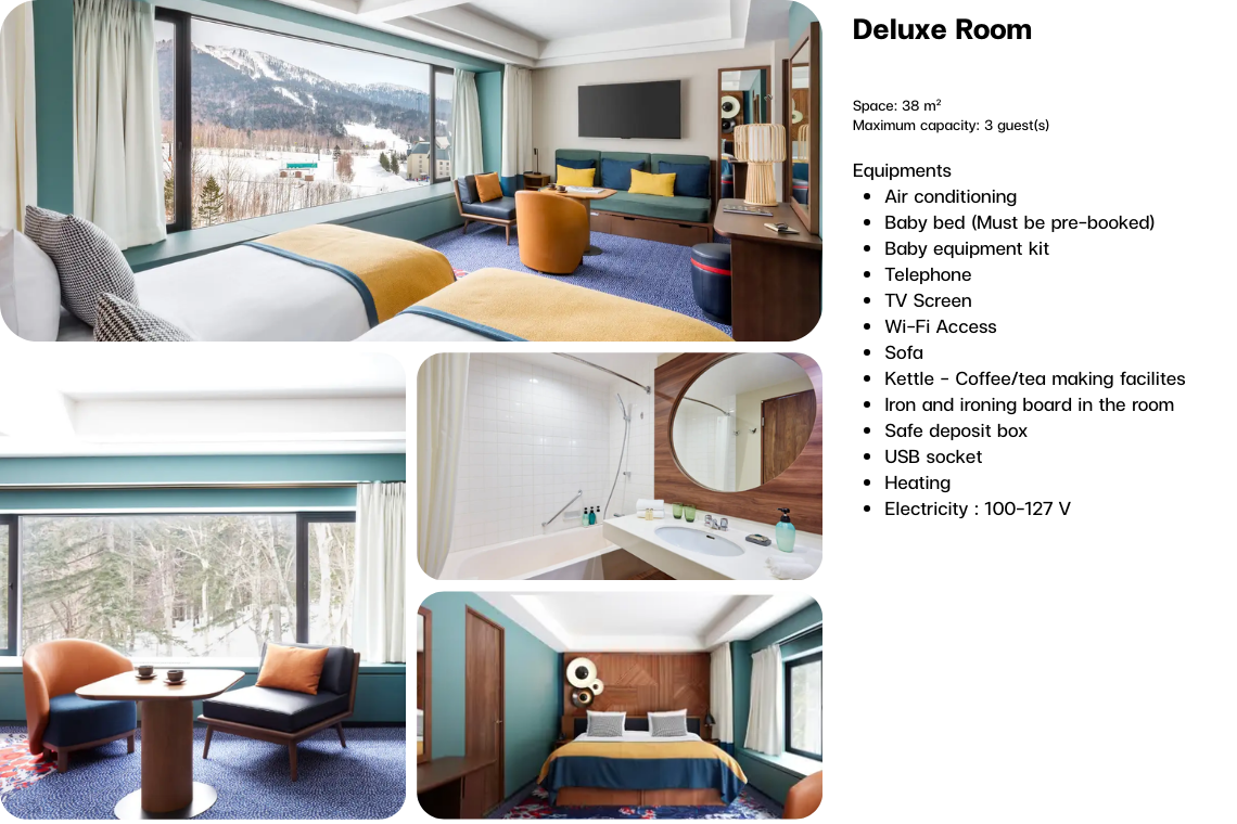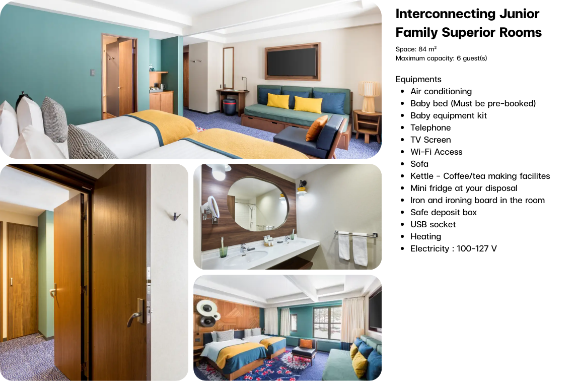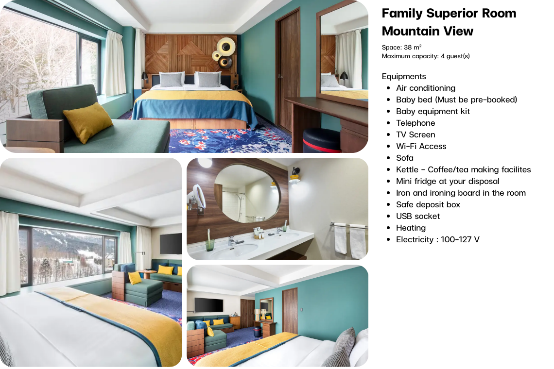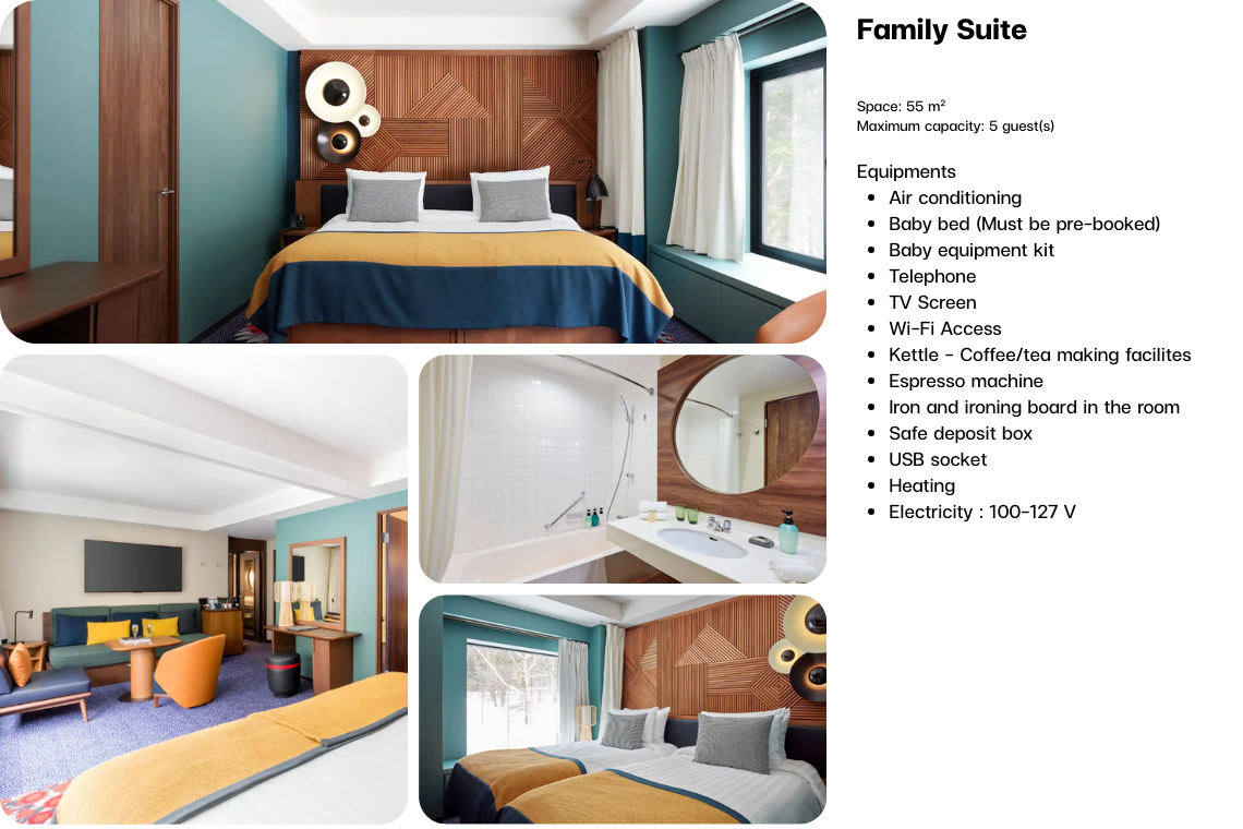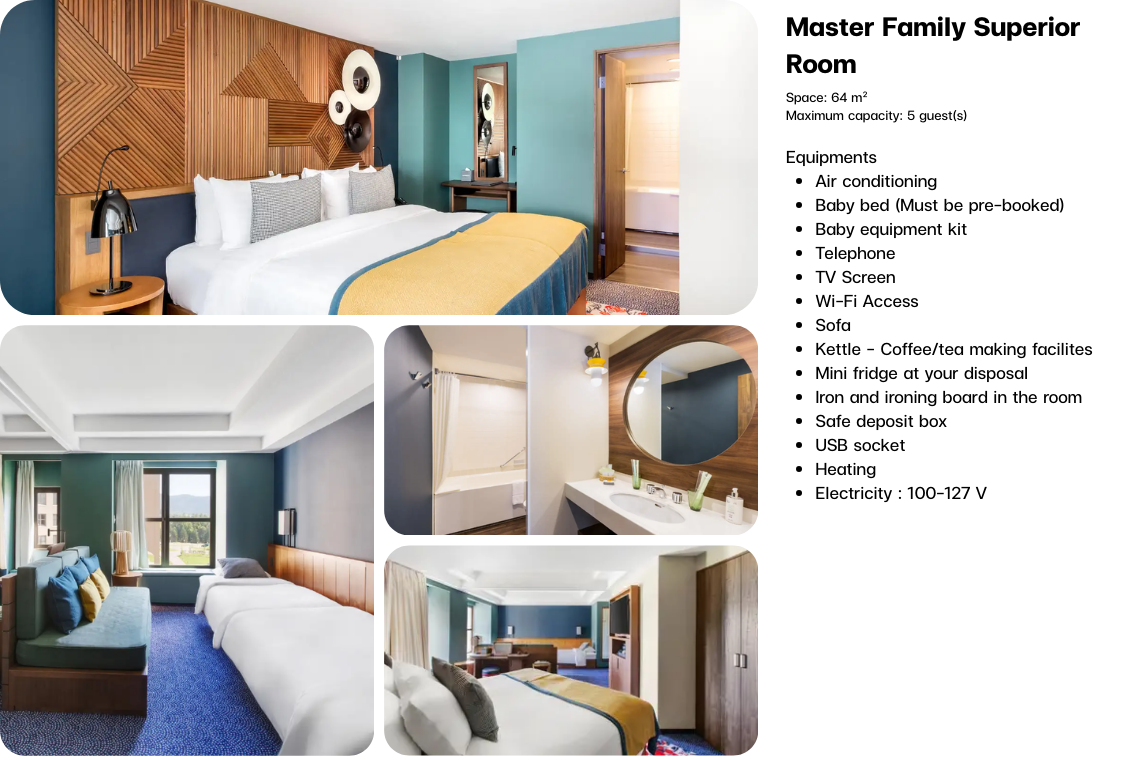 - ฟรี กิจกรรม เช่น สระว่ายน้ำ Mina Mina (สระน้ำในร่ม) ,บ่อน้ำร้อนออนเซ็น