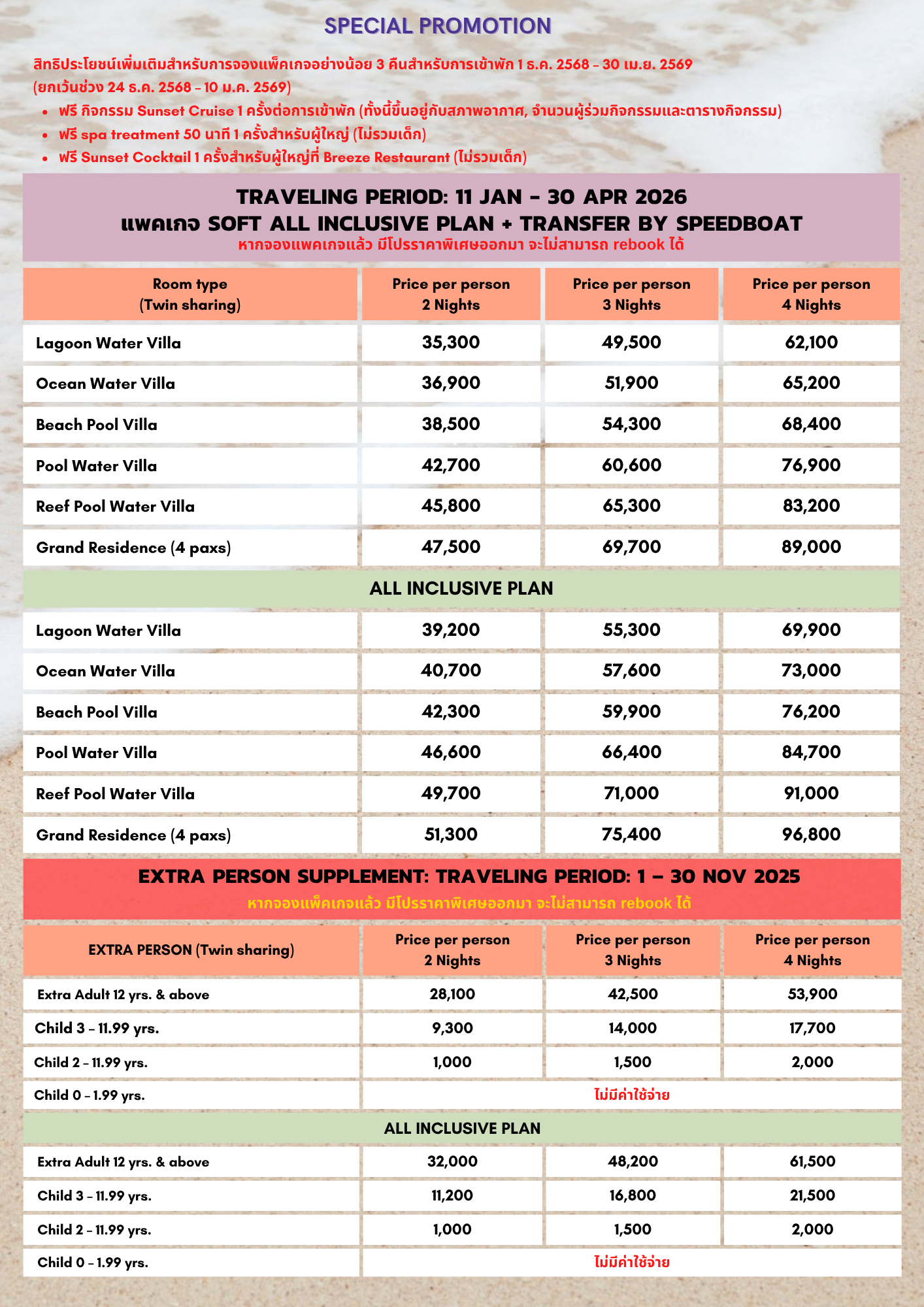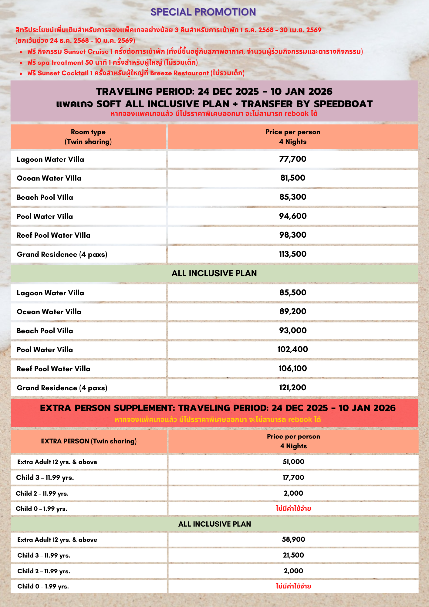 สิทธิพิเศษสำหรับการจองแพ็คเกจอย่างน้อย 3 คืน
