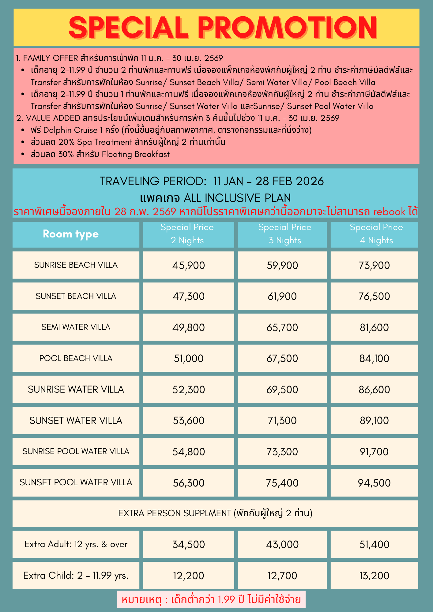 พิเศษ! สำหรับการเข้าพัก 11 ม.ค. – 30 เม.ย. 2569