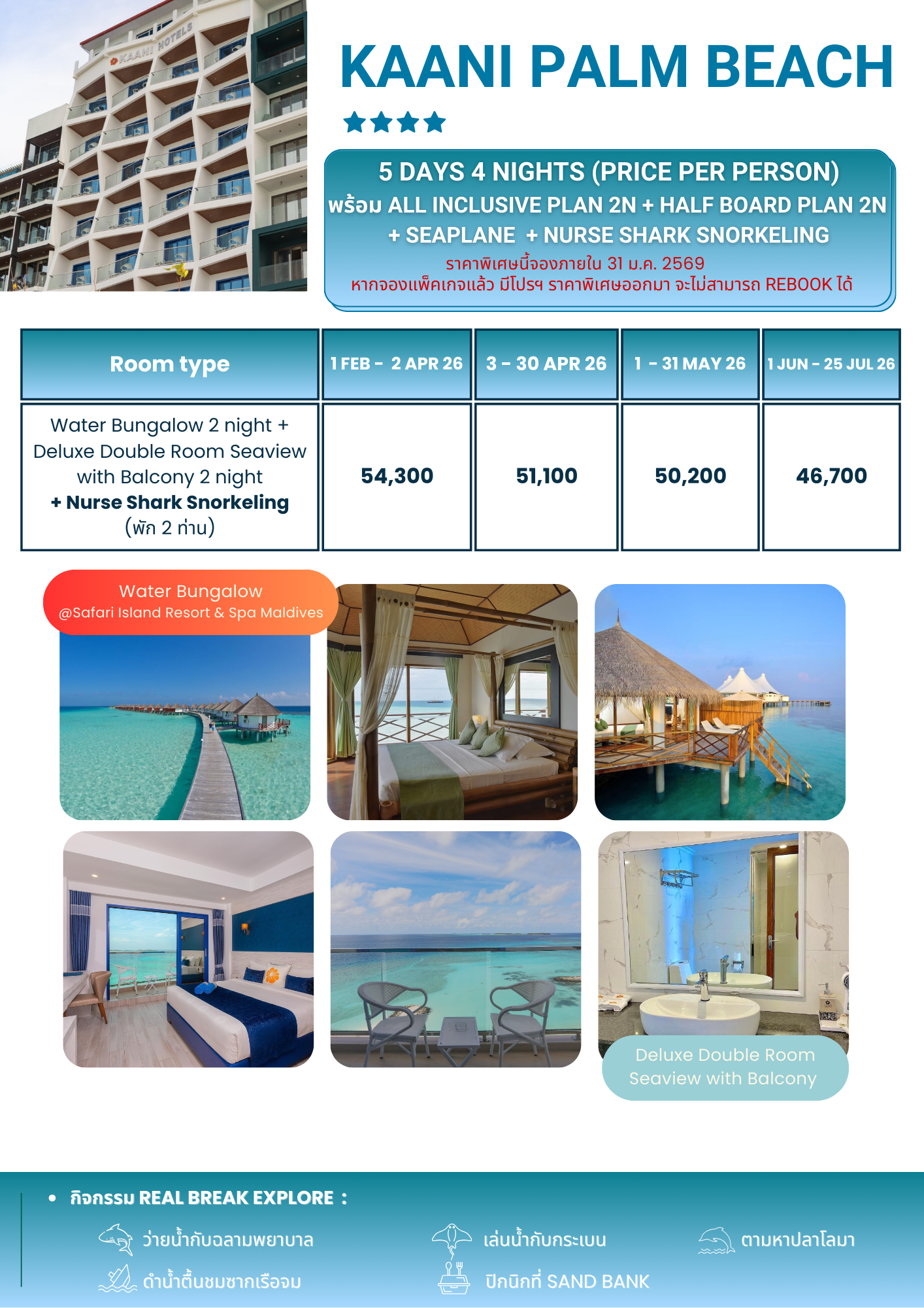 หมายเหตุ: Safari Island Maldives และ Kaani Palm Beach Maafushi อนุญาตให้เด็กเข้าพักได้