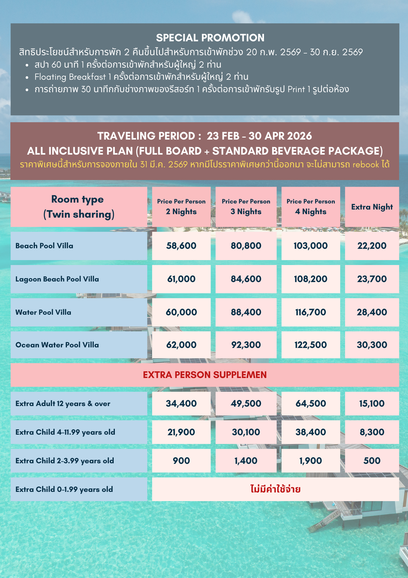 สิทธิประโยชน์เพิ่มเติมสำหรับการพัก 2 คืนขึ้นไปสำหรับการเข้าพักช่วง 1 ธ.ค. 2568 – 5 พ.ค. 2569