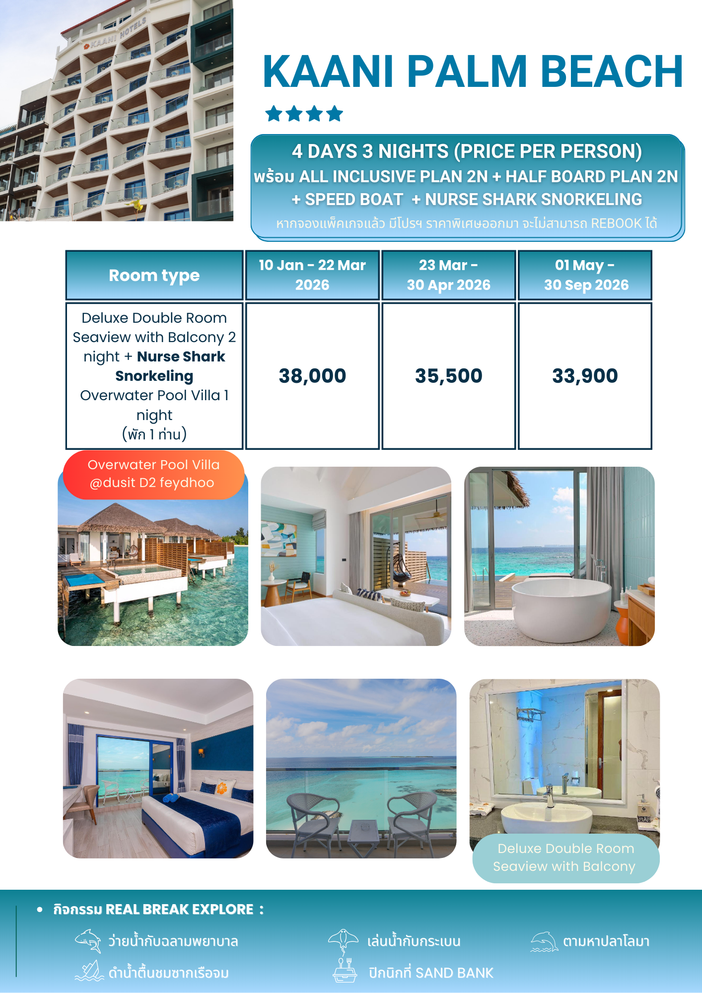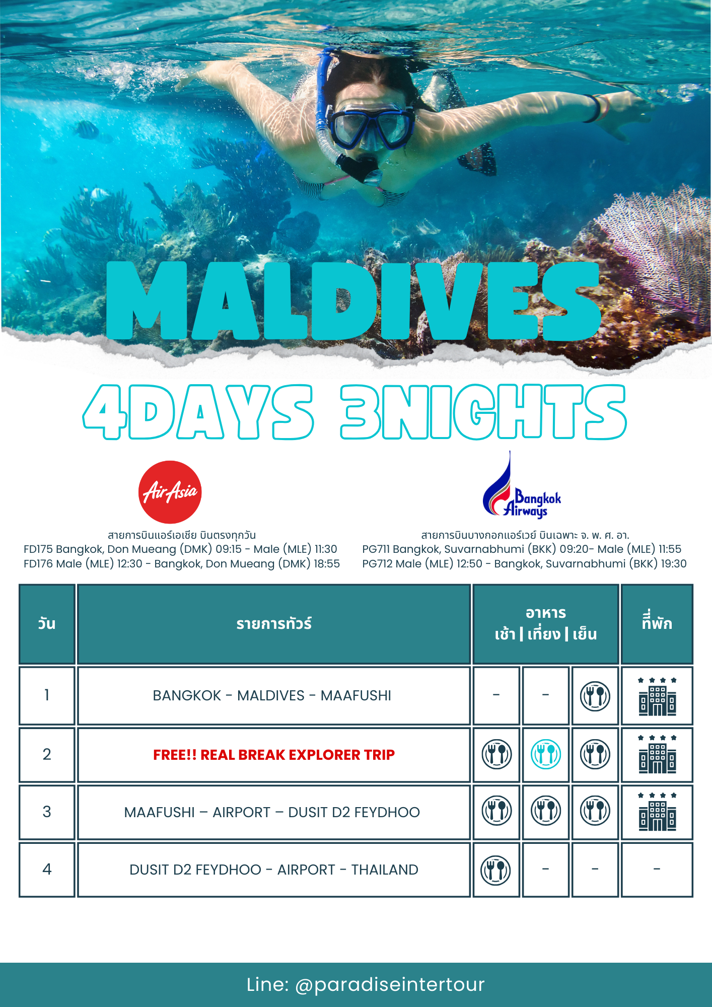 • ไม่รวมค่าตั๋วเครื่องบิน กรุงเทพฯ-มัลดีฟส์