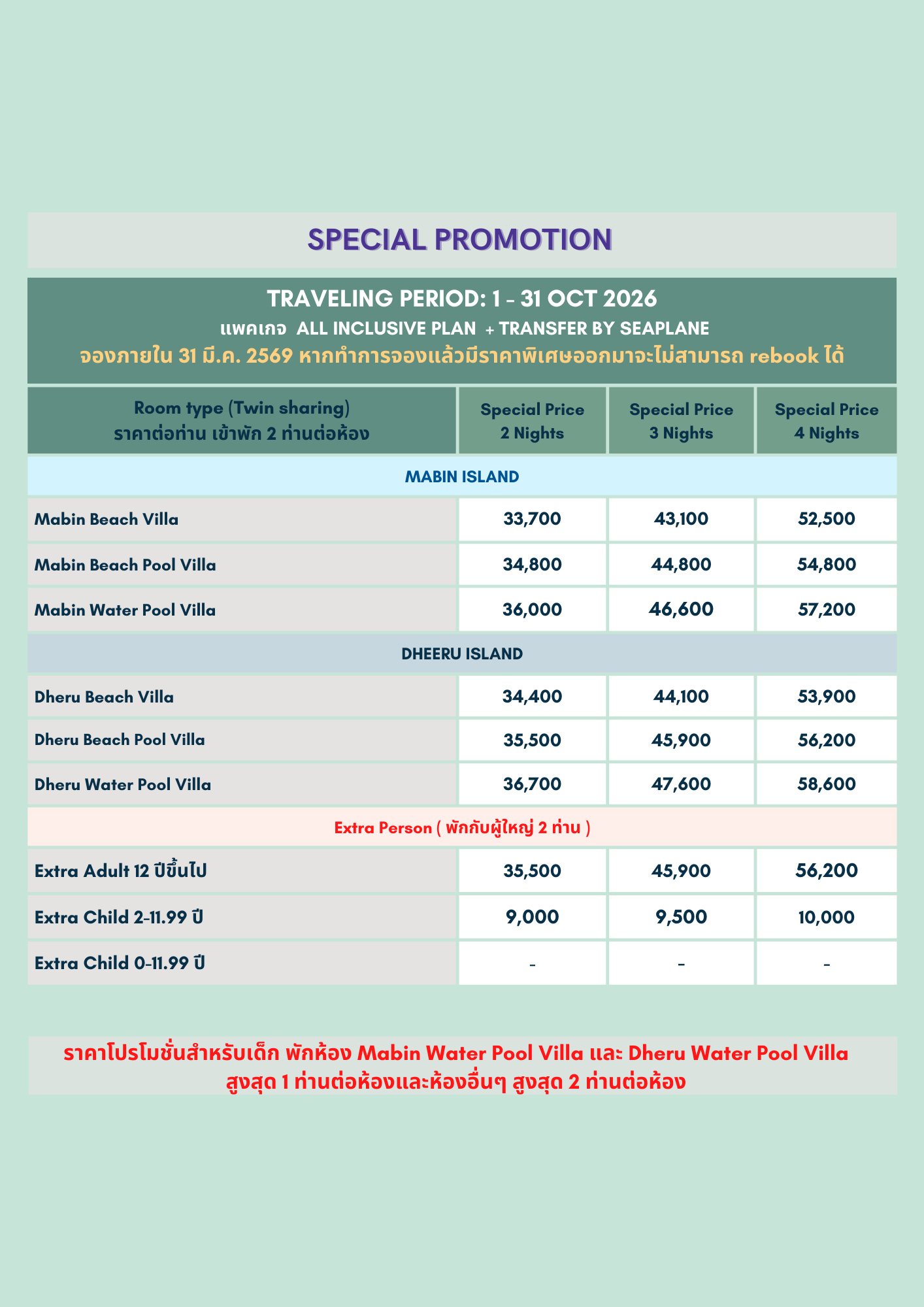 – เดินทางสู่รีสอร์ทด้วย Seaplane 40 นาที